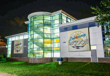 V Aquacentru Lagoon je k dispozici 25 m dlouhý plavecký bazén se 6 drahami a atrakcemi. Uvítáte boční masážní trysky, dnové masáží rošty, protiproudovou trysku. Pro děti tu mají brouzdaliště s malou skluzavkou, masážní bazén a zábavný bazének s masážními tryskami, rošty, chrliči vody a malou divokou řekou. Hlavním lákadlem je 86 m dlouhý tobogán.