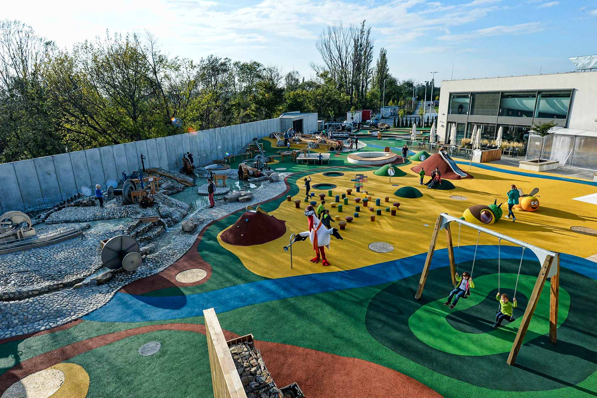 Vodní svět je centrem všeho, co se v BRuNO family parku děje pod širým nebem. Užijete si toho hodně. Celkem na vás čeká 15 skvělých atrakcí. Jsou tu Archimedovy šrouby, pumpy, hravé gejíry, stavidla, vodní kola. Zaskáčete si z výšky dvou, nebo dokonce až čtyř metrů, na Bagjumpu do vzduchového polštáře. Můžete jezdit na šlapacích autíčkách, vozit se na kolotoči Kejval, kam se vejde až třicet dětí. Skáče se na trampolínách a nafukovacím polštáři, užijte si jízdu na tobogánu, dostanete se na něj přes krtkovy nory a čapí hnízdo.