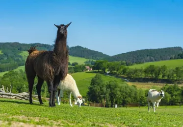 Evropa, Amerika, Afrika, Austrálie a Asie jsou světadíly, které mají díky zde chovaným zvířatům ve Farmaparku zastoupení. Uvidíte tu různé druhy ovcí, koz, koňů a poníků. Spatříte skotský náhorní skot, velbloudy, vodního buvola, muflona, lamu, kachničku, prasátka, vysokohorské krávy, ale také klokana, černou labuť, pštrosa a řadu dalších pozoruhodných druhů. Celkem zde poznáte kolem 250 zvířat. Mnohá z nich jsou krotká a můžete je s chovatelem krmit. U pokladny zaplatíte za krmení poplatek a dostanete na ruku náramek, aby vás chovatelé mohli identifikovat.