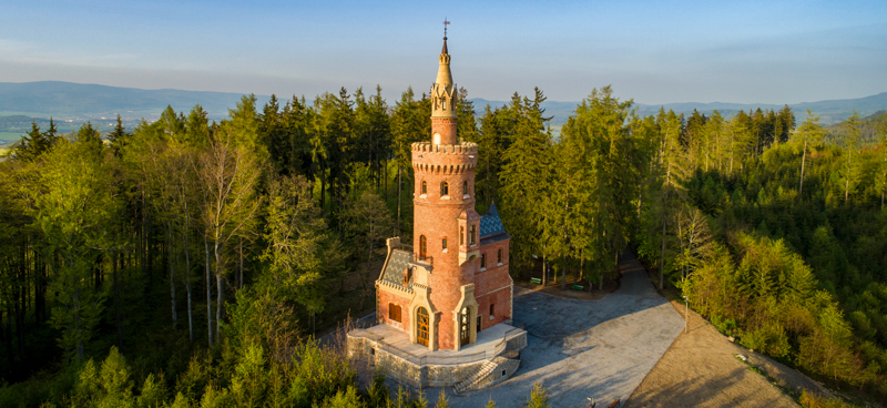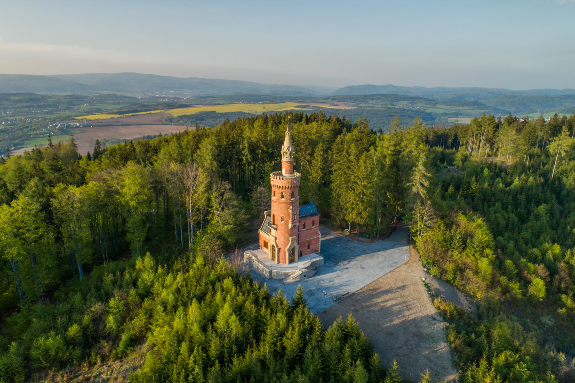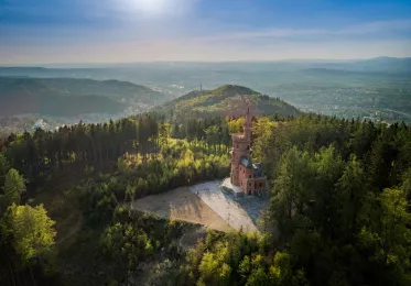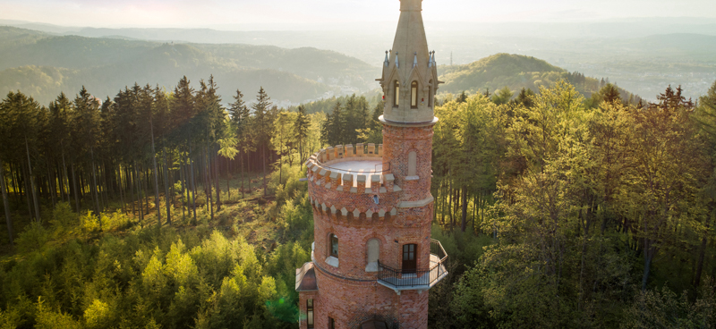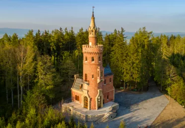V lesích na Výšině věčného mládí v Karlových Varech můžete zavítat na rozhlednu v nadmořské výšce 641 metrů. Cihlová mohutná věž byla postavena v novogotickém stylu a od roku 1957 nese název Goethova vyhlídka. Honosná válcová stavba z řezného zdiva na masivních základech z kamenných bloků je vysoká 42 metrů. Upoutá vás i její zdobení cimbuřím. Nad věží se ještě tyčí menší věžička.