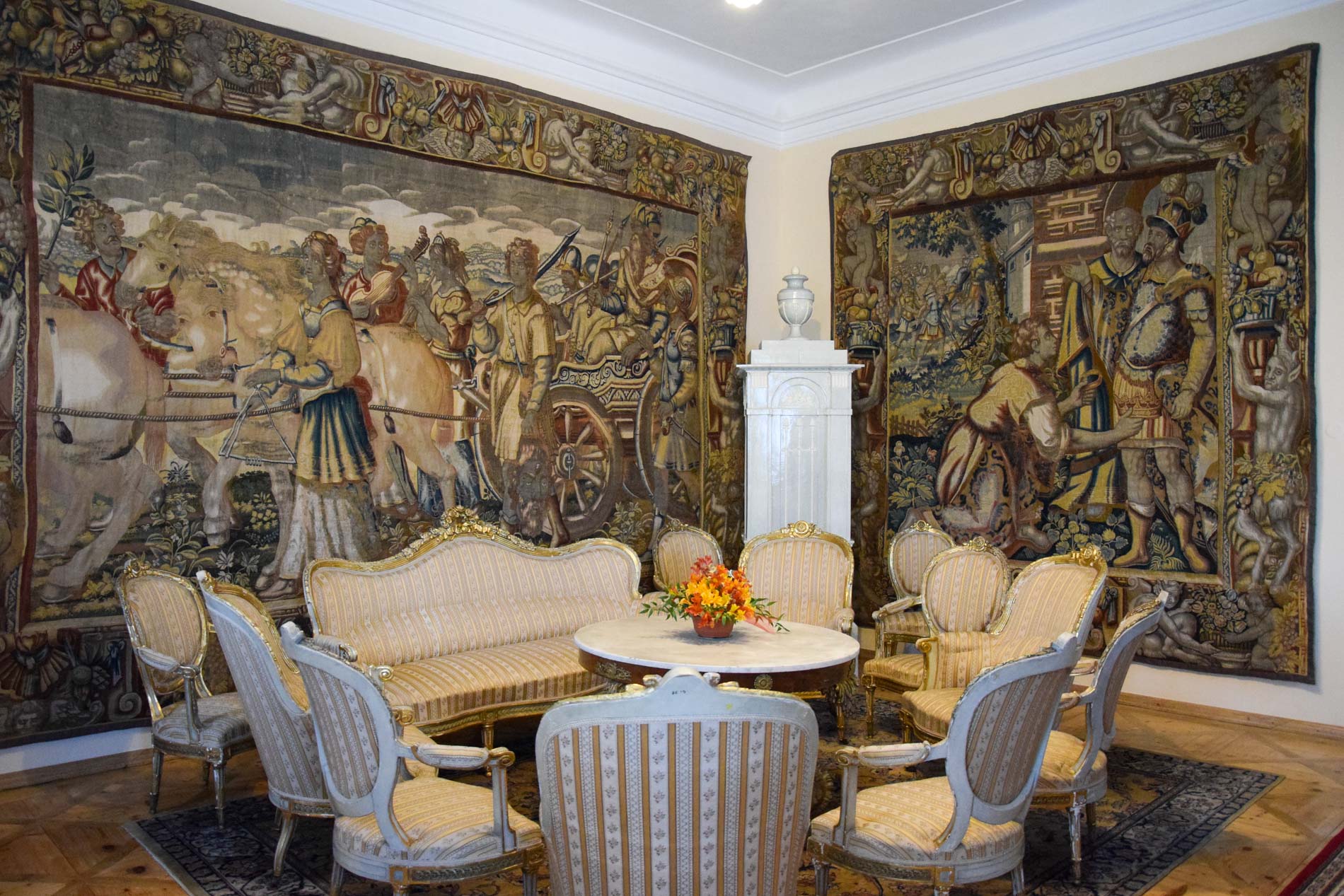 V dalším prohlídkovém okruhu na zámku nahlédnete do honosných interiérů. Během prohlídky projdete grafickým, červeným, gobelínovým a španělským salonem. Zavítáte do Beaufortské knihovny a kaple sv. Petra.