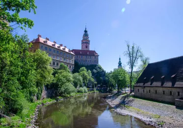 Vysoko nad korytem Vltavy se v malebném historickém městě se tyčí hrad a zámek Český Krumlov s 54,5 metru vysokou válcovou věží. Z jejího ochozu se vám naskytne jedinečný výhled na město i jeho okolí.