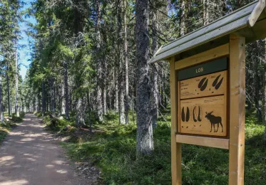 Jelení naučná stezka je okruh dlouhý 2,5 km a vede od návštěvnického centra přes Jelení a Rysí výběh a zpět. Po cestě se seznámíte s místní přírodou – stromy, rostlinami a stopami jelenovitých a prasete divokého. Pohyb po stezce je bezpečný díky nízkým dřevěným ohrádkám a vyvýšeným pozorovacím věžím. Na trase jsou lavičky, kde si můžete odpočinout a vychutnat klid šumavské přírody. Celý okruh je bezbariérový a vhodný i pro kočárky.