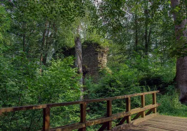 U zříceniny je ohniště s dřevěnými lavicemi, v Purkarci objevíte Hospůdku U Voraře.