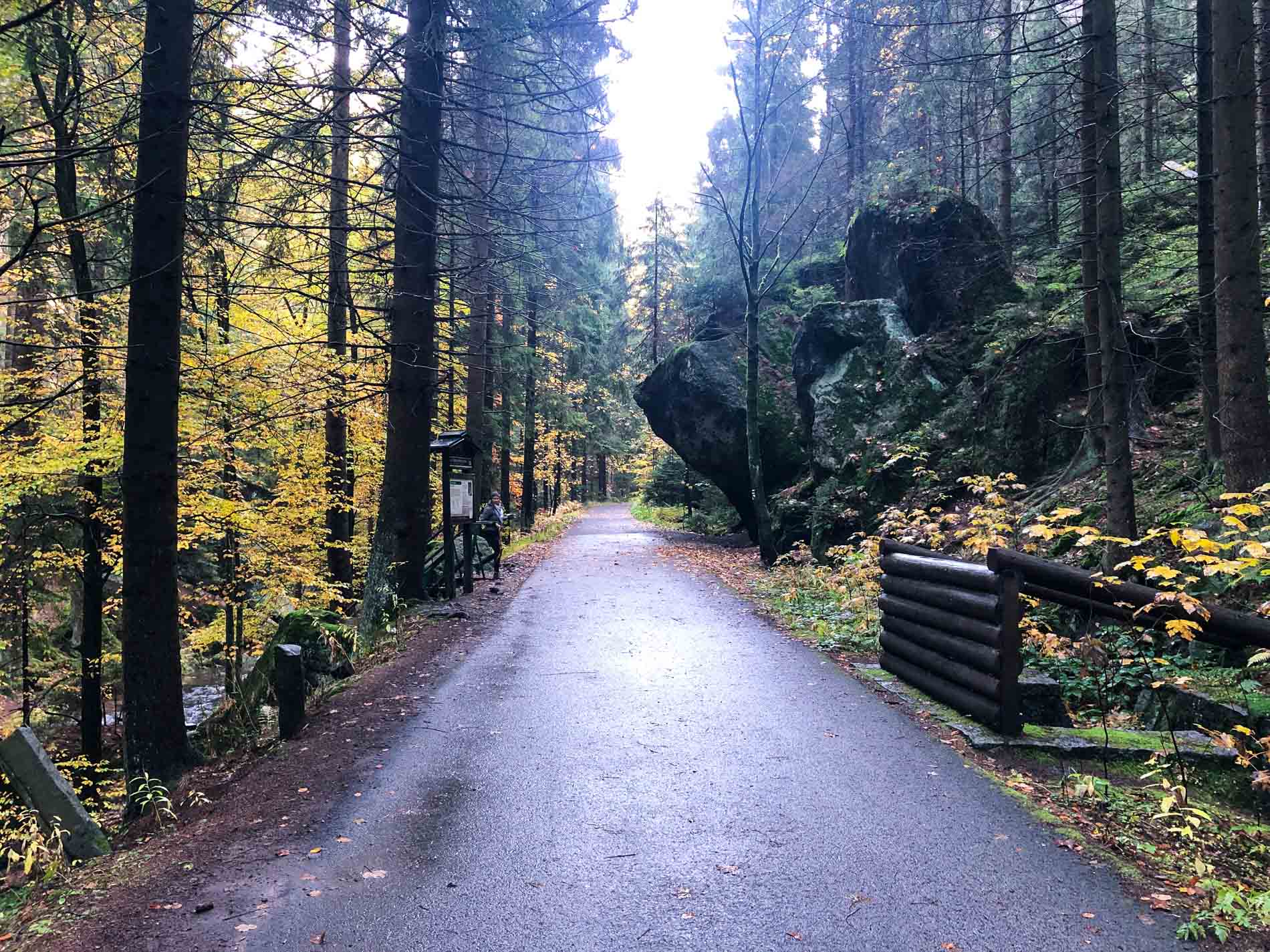 Procházka malebným kaňonem říčky Křinice je romantická. Dříve se tudy plavilo dřevo do Saska. Skalní stěny, které údolí lemují, mají své názvy podle tvarů. Například Bratrské kameny, Vinný sklep, Jeskyně víl, Klenotnice nebo Lví jeskyně (Medvědí doupě). Údolím půjdete po zpevněné cestě. Z ní míří přírodní pěšiny do skal. Protínají ji turistické a cyklistické trasy. Na konci údolí stojí pamětní kříž věnovaný zajatcům pochodu smrti z roku 1945. Objevíte i pamětní desky na osobnosti regionu.