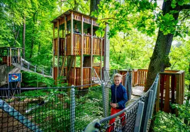 Zoologická zahrada Lešná ve Zlíně na střední Moravě nabízí kromě exotických zvířat atraktivní Cestu korunami stromů, propojenou s Dětským lanovým centrem – Lanáčkem.