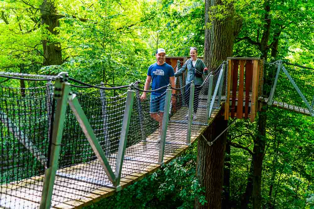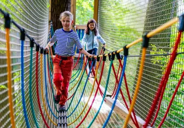 Na Lanáček navazuje Cesta korunami stromů, z které budete s celou rodinou poznávat svět z výšky. Přes nástupní věž se vypravíte do síťových chodeb mezi stromy. Na visutých lávkách uprostřed zeleně čekají různé překážky, atraktivní nerezový tobogan, přelet nad deštným pralesem či jízda lanovkou. Děti do 12 let musí být v doprovodu rodičů.