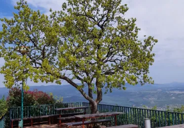 U kamenné stěny, která je připomínkou původní rozhledny, můžete vidět kovaný kříž, který sem jako poděkování za záchranu svých tří dětí, které zde našly útočiště při bouři, nechala umístit v roce 1894 jejich vděčná matka. Kříž se stal historickou památkou.