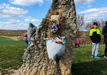 Na kopci nad Mořinkou působí 3 m vysoký, uměle opracovaný vápencový kámen jako strážce krajiny. Autorem menhiru je sochař Petr Váňa, který obrovský kolos, vážící skoro 8 tun, usadil se stovkou nadšenců do krajiny jen s pomocí dřevěných kulatin a provazů. Stalo se tak symbolicky v poslední den milénia. Vápencový kolos pochází z lomů.
