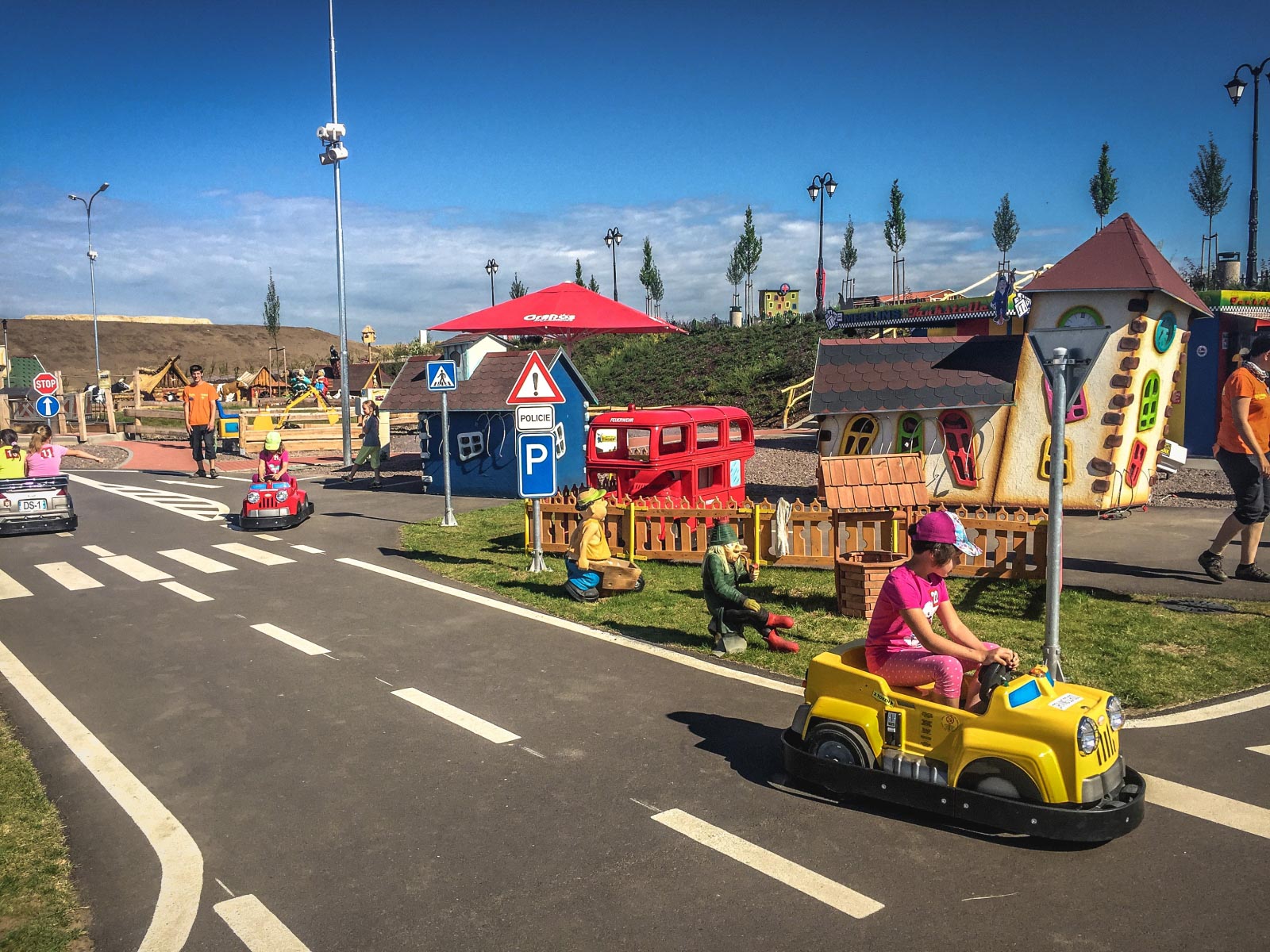 V zábavním parku Kinderwelt se nachází více než 200 atrakcí pro děti i dospělé. Vyzkoušíte si skok lodičkou do vody, což je tady bezkonkurenčně nejpopulárnější atrakcí. Budete jezdit auty i autíčky, terénními vozy. Povozíte se na čtyřkolkách, na motokárách, motorkách, nebo třeba džípem. Můžete si zasoutěžit na autodráze ve Formuli 1. Svezete se Merlinovým vláčkem. Je tu i malá venkovská farma s vlastním vláčkem. Můžete pilotovat letadélko, plout po vodě na člunech. Ocitnete se ve vesmírné lodi nebo v lunárním vozítku. V areálu je i horská dráha nebo lanovka. Potěší vás skluzavky, trampolíny. Oblíbené je velké lanové centrum. Můžete si zahrát na piráty, bojovat na pirátské střelnici nebo v pirátské lodi.