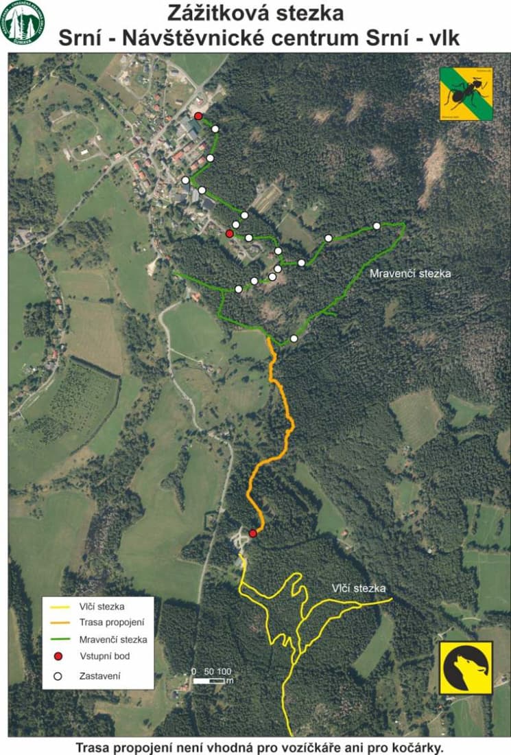 U obce Srní na Šumavě vznikla naučná Mravenčí stezka, která promění obyčejnou procházku lesem v dobrodružství plné her a objevování. Tříkilometrový okruh zvládnou i malé děti, přitom ale pobaví i dospělé. Stezka je vhodná pro první seznamování s přírodou, pohybem i světem lesních obyvatel.
