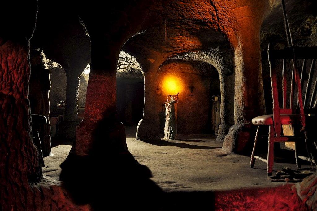 Přijměte také pozvání do sklepení, které ovládají satanáši. V místech, která kdysi sloužila jako spíž potravin, dnes žijí čerti. Prohání se spletitými chodbami a temnými zákoutími a čekají, až je navštívíte. Kromě čertů si můžete v muzeu prohlédnout expozici dřevěných soch řezbářů Věry a Jaroslava Stejných, pohyblivý čertí svět, výtvarná díla uměleckého spolku „Spolu“ z Ústí nad Labem, dětská výtvarná díla inspirovaná slavnými pohádkami, nádherné grafiky a ilustrace známého autora obrázků čertů, Karla Franty a mnohé další.