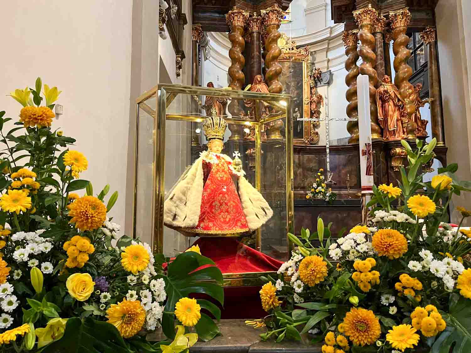 V expozici muzea Pražského Jezulátka najdete dřevěný reliéf Pražského Jezulátka z roku 1880, sakrální předměty věnované kostelu v období 17. a 19. století. Můžete obdivovat vybrané historické šaty pro sošku a oděvy z celého světa. Součástí expozice jsou šaty od císařovny Marie Terezie, korunka od papeže Benedikty XVI. při jeho návštěvě v roce 2009 či historická rokoková korunka. Uvidíte šaty z Koreje, Mexika, Filipín, Itálie, Polska atd. Pozornost poutají na schodišti vystavené fotografie z převlékání Pražského Jezulátka, fotografie sošky v šatech různých liturgických barev ve skutečné velikosti. Prohlédnout si můžete betlémy z různých zemí.