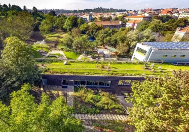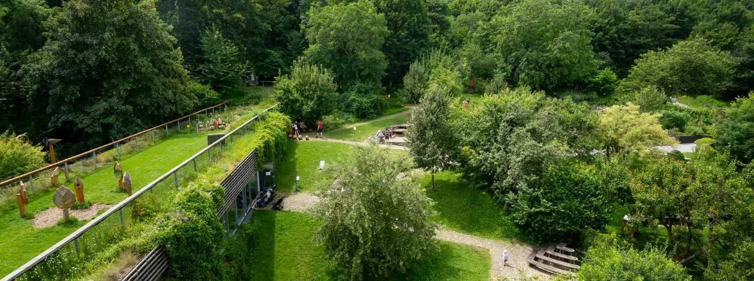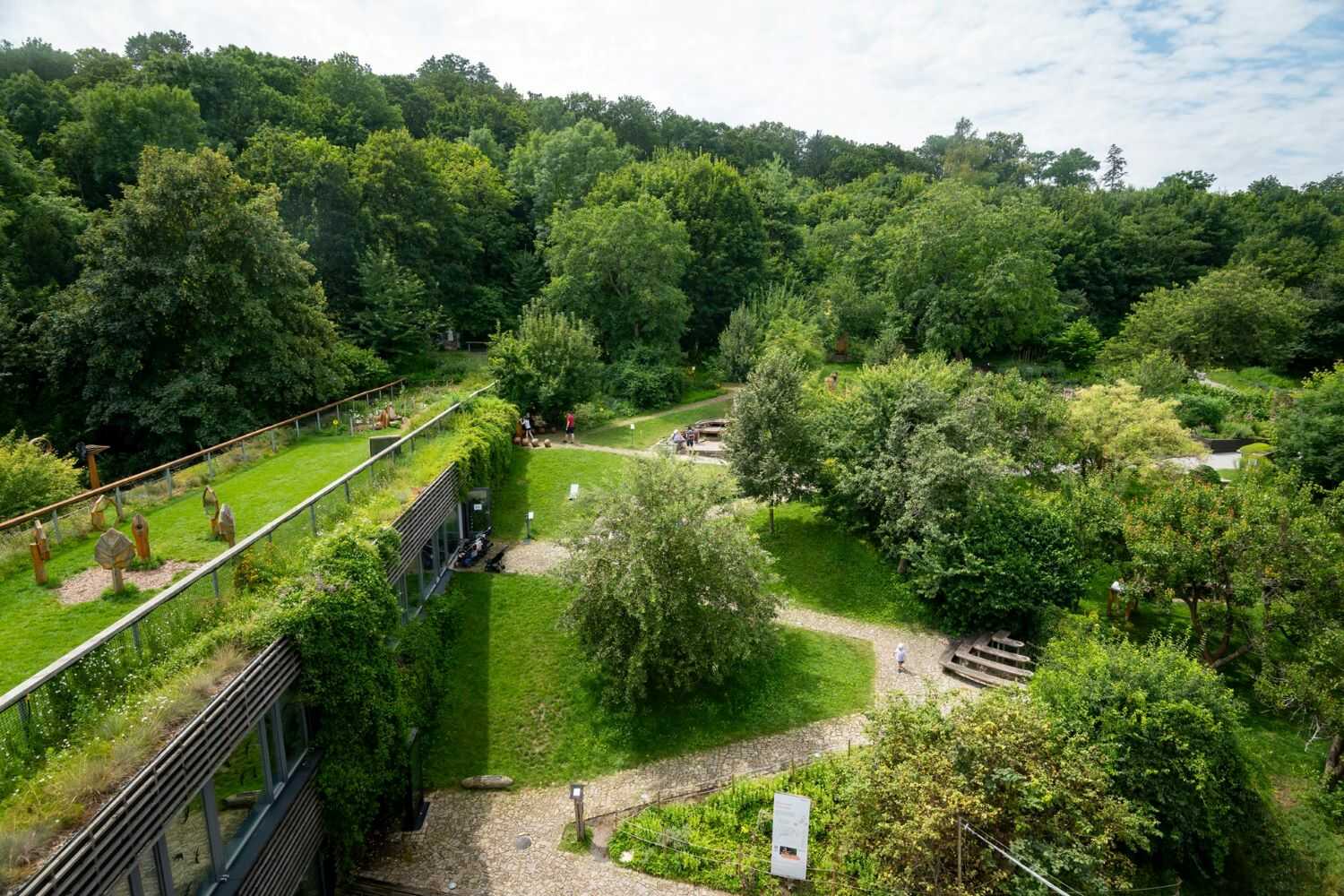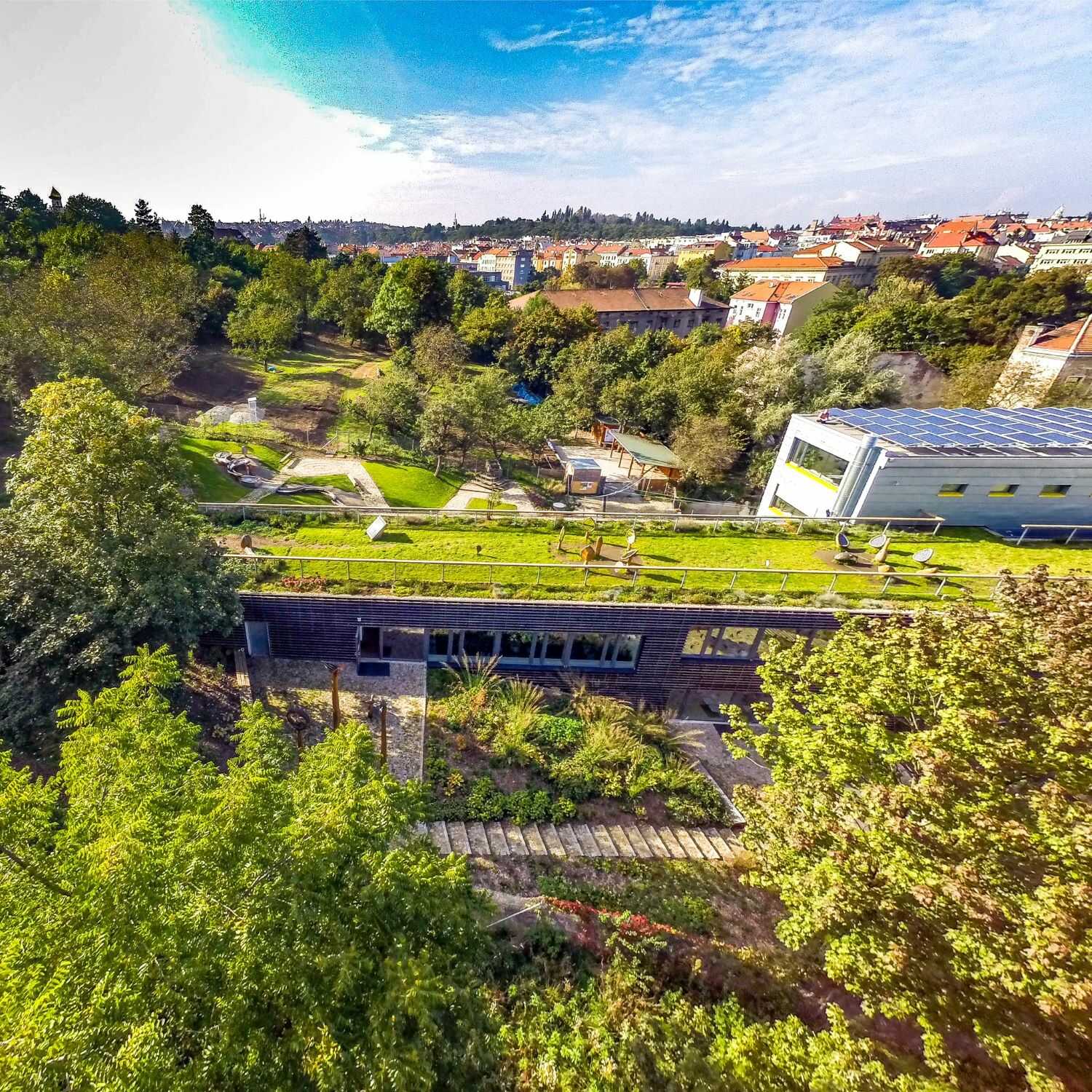 Hned při vstupu vás přivítá barevný průchod a za ním voňavá zahrada s terasami, pěšinami a unikátní pasivní budovou se zelenou střechou. Na interaktivním hřišti na vás čeká dvanáct stanovišť rozdělených do čtyř témat – Země, Voda, Vzduch a Slunce. Hravou formou si tu vy i vaše děti vyzkoušíte, co už znáte ze školy: zjistíte, jak vzniká vítr, proč je voda nejcennější tekutinou nebo jak voní bylinky. V sousední Boromejské zahradě poznáte cestu potravin od půdy až po stůl.