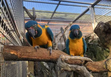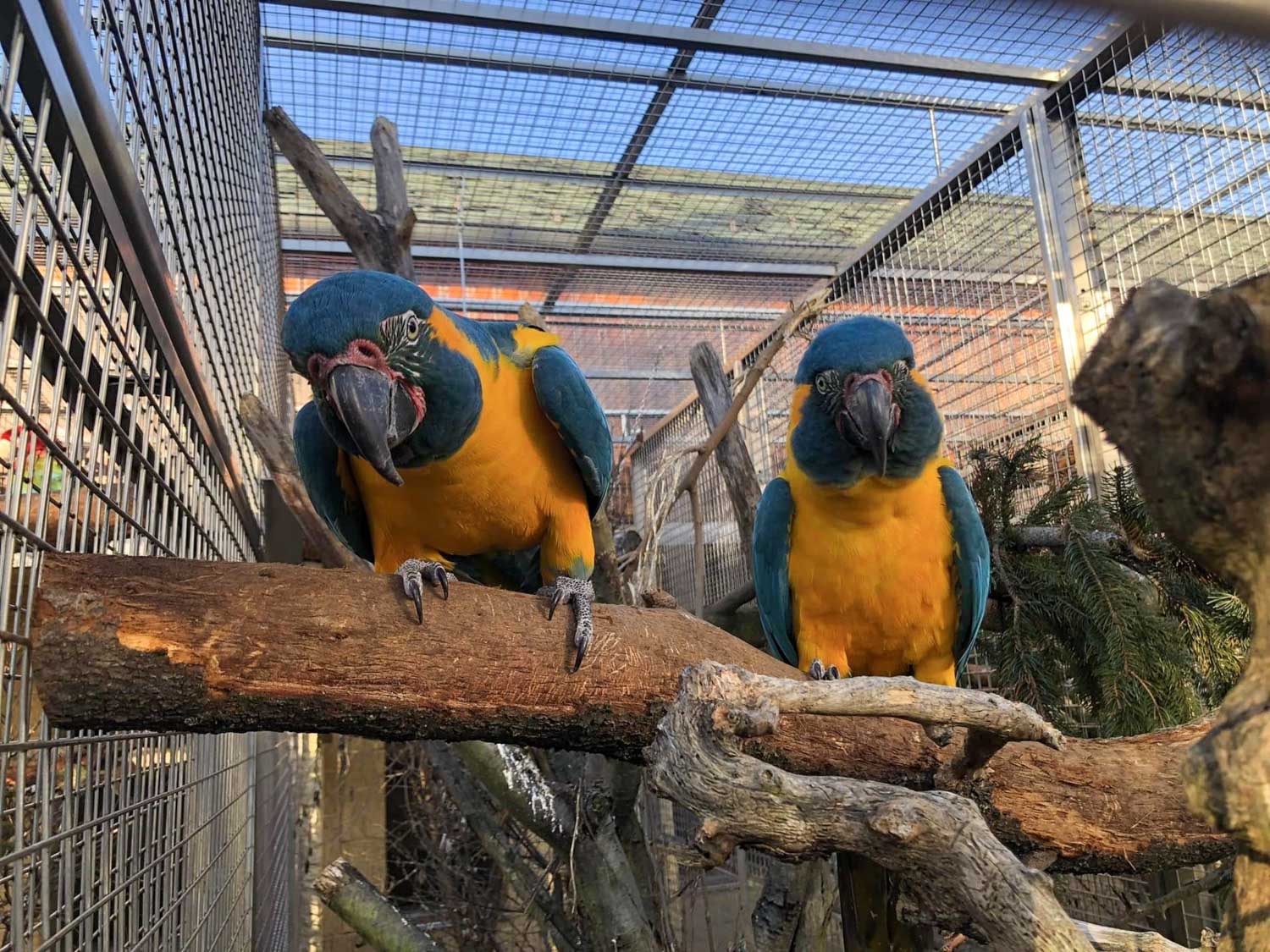 V areálu Papouščí zoo žije mnoho druhů papoušků – od drobných ptáků až po majestátní ary. U každé voliéry najdete přehledné popisky s informacemi o původu i způsobu života jednotlivých druhů. Papoušci pocházejí z tropických oblastí Jižní Ameriky, Afriky i Austrálie. Setkáte se zde s oblíbenými druhy, jako jsou kakadu, žako, korely nebo andulky, ale i s méně známými zástupci. Papoušci jsou velmi zvídaví a hraví tvorové, proto ve voliérách mají dřevěné hračky, bidýlka a rozprašovače s vodou. Tyto prvky je nejen zabaví, ale pomáhají napodobit přirozené chování, které by měli ve volné přírodě.