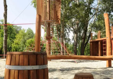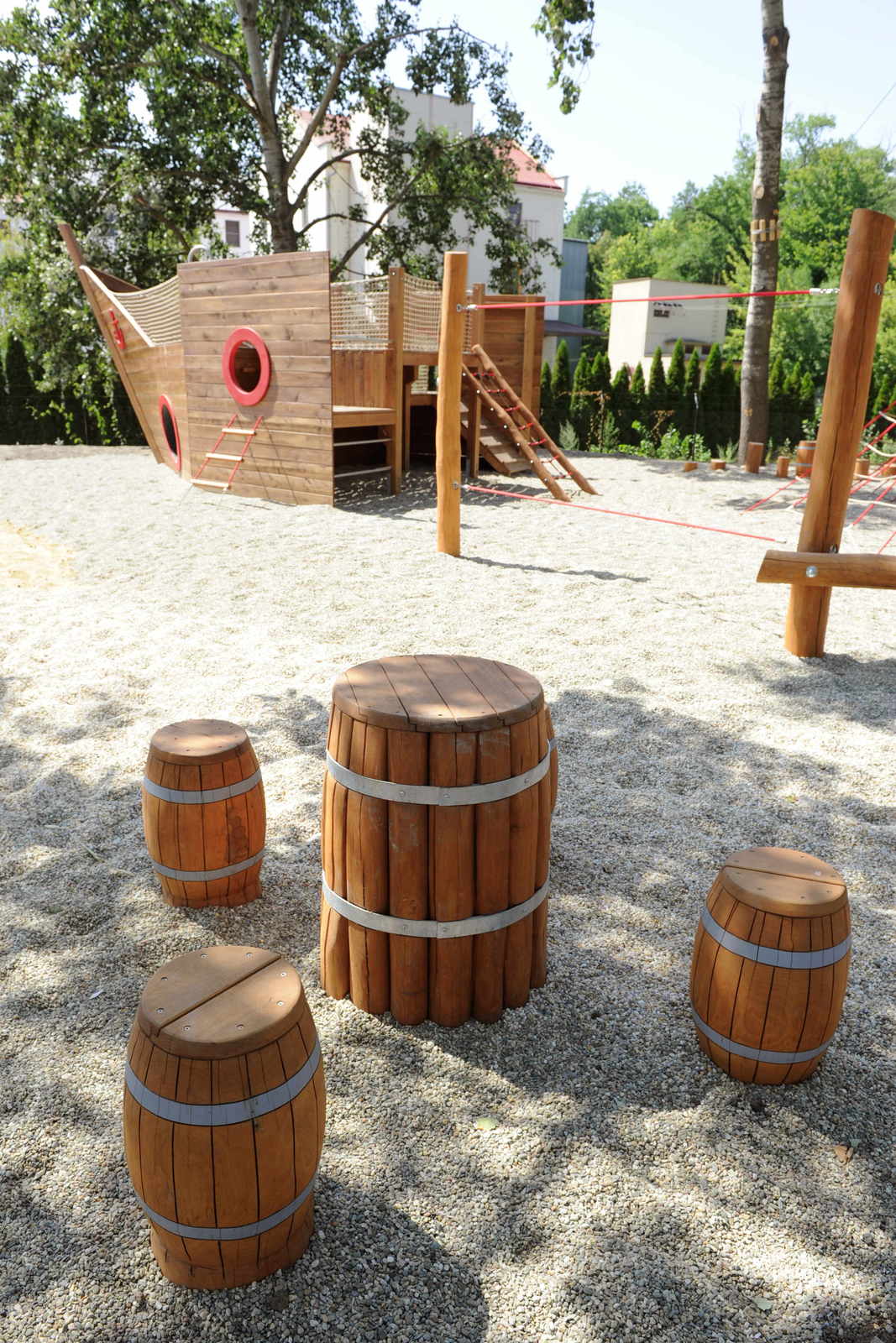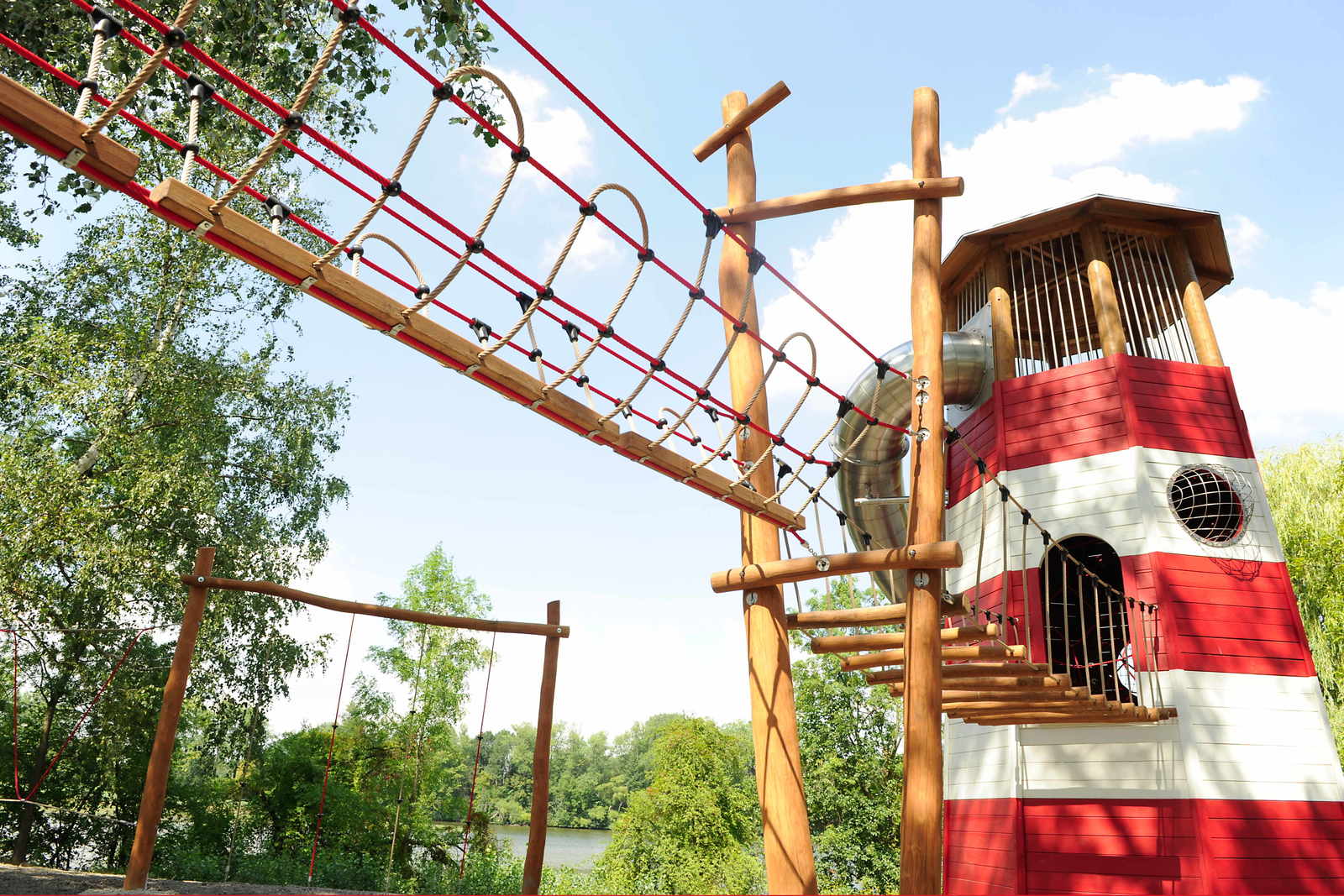 V okolí lodi je na hřišti řada souvisejících prvků na protažení těla. Pobaví vás například šplhání do lodního koše, umístěného na stromě. Na palubu lodi se dostanete s pomocí žebříků, vede odtud dolů skluzavka. Z paluby lodi, kde objevíte i pravé kormidlo, k majáku vede lanová lávka, kde musíte dobře držet balanc, aby vás nemusela zachytit bezpečnostní síť.