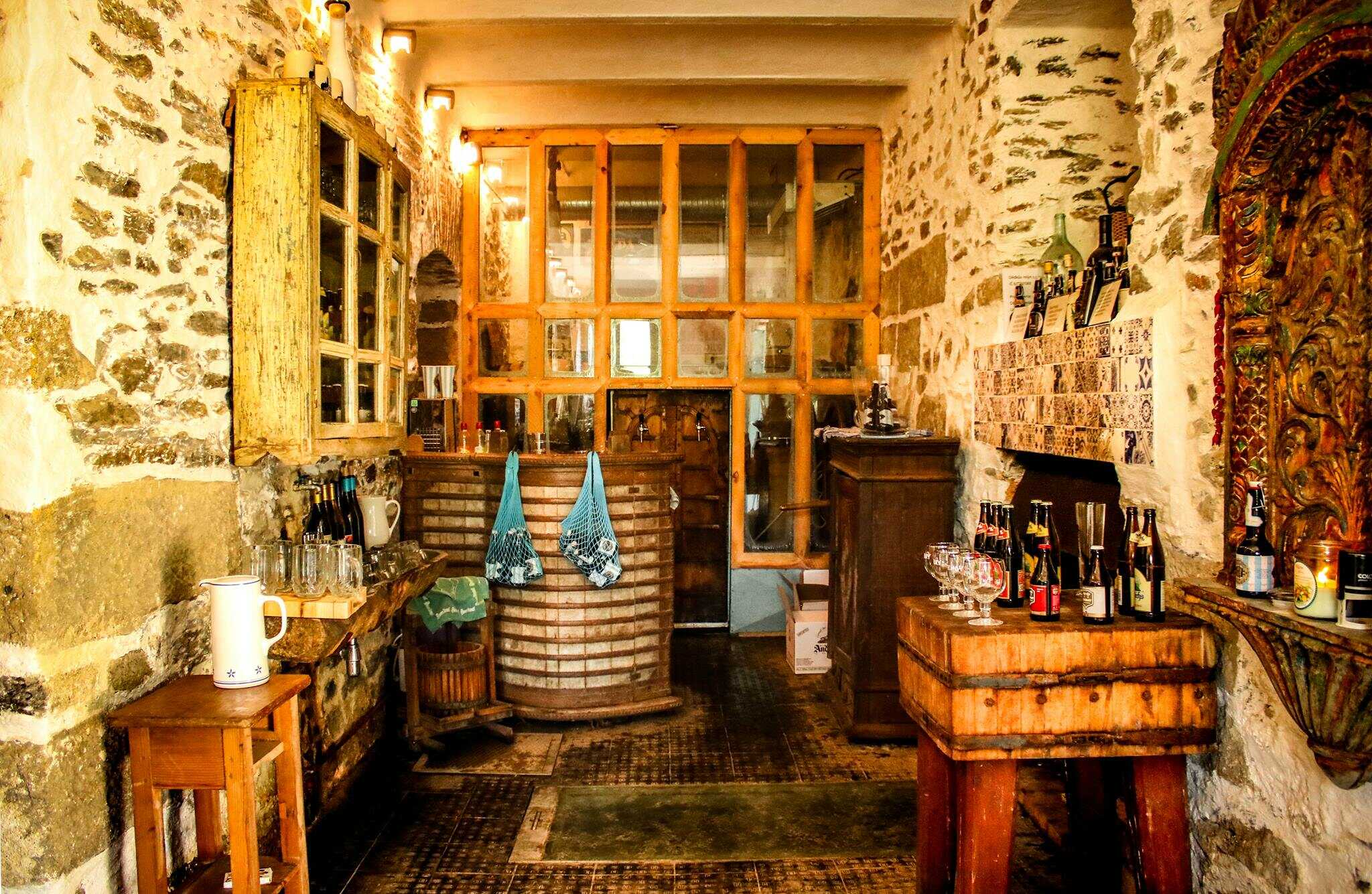 Prohlédnete si kachlová kamna s varnou na pivo s přímým ohřevem. Mají tu i dubové sudy. Vodu bere sládek Milan Gojda z vrtu.