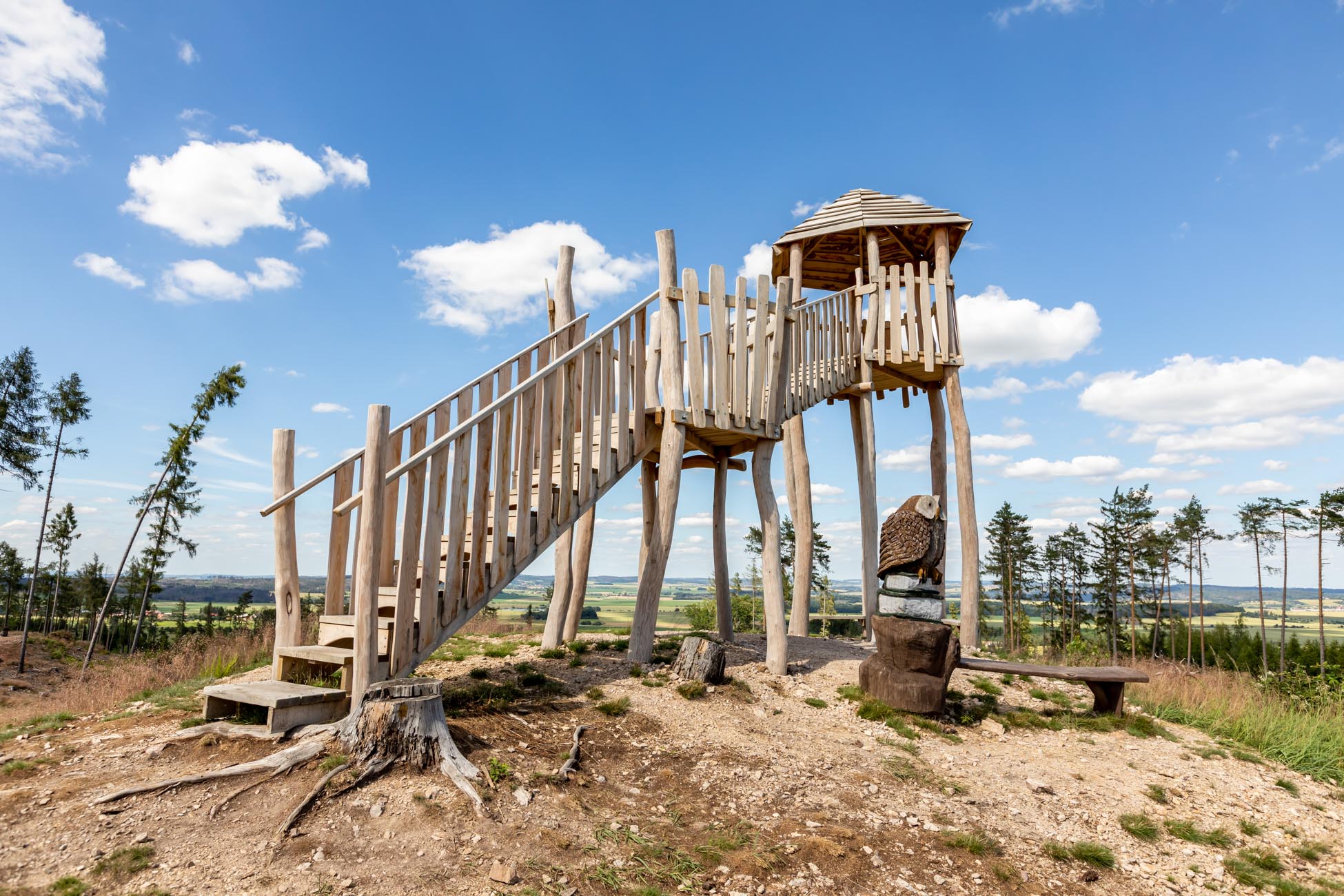 Pohádková Panenská nabízí také možnost vydat se na rozhledny, které jsou celoročně volně přístupné. Rozhlednu u sovy najdete na trase Pohádkové stezky, která je jejím nejvyšším bodem. Nabízí výhled do širokého okolí a je umístěna na vrcholu – Sedlo – v nadmořské výšce 600 mnm. Další menší Rozhledna pod lesem nabízí krásné pohledy na Pohádkovou Panenskou, kde mimo jiné můžete vidět např. nově opravenou kapličku sv. Jakuba. Dostanete se k ní z posledního zastavení pohádkové stezky (Obrova bota). Odtud je to cca 270 m po značené cestě.