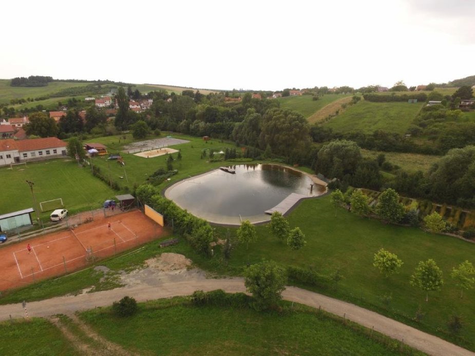 Mezi obcemi Kovalovice a Viničné Šumice nedaleko Brna na jihu Moravy si mohou návštěvníci užívat koupání v uměle vybudovaném přírodním biotopu.