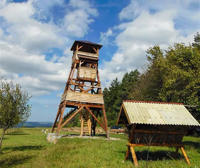 U rozhledny není občerstvení. Ale můžete tam posedět u stolů s lavicemi a využít třeba ohniště. Také zde je k dispozici přístřešek.