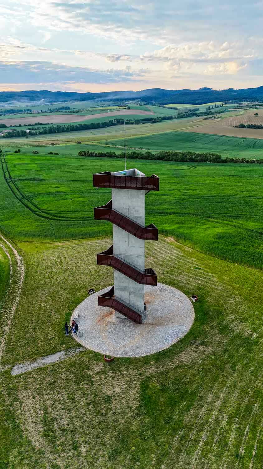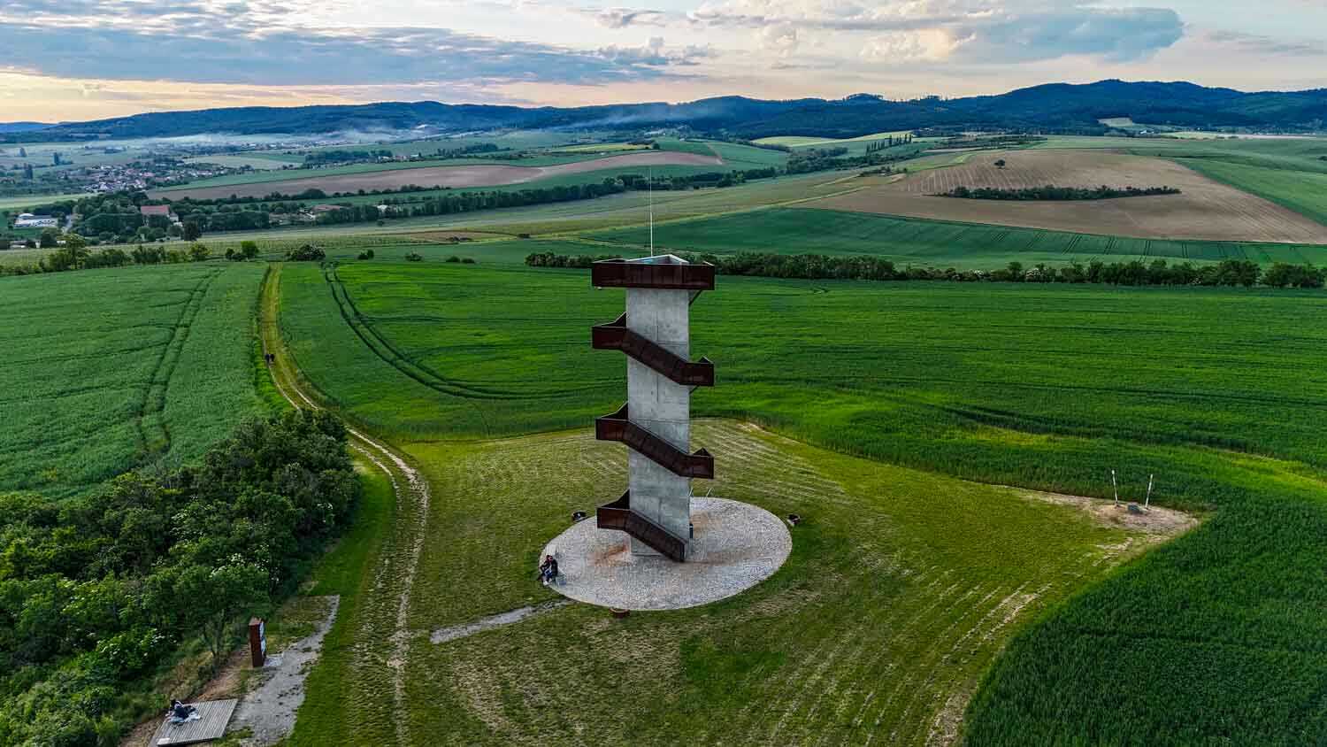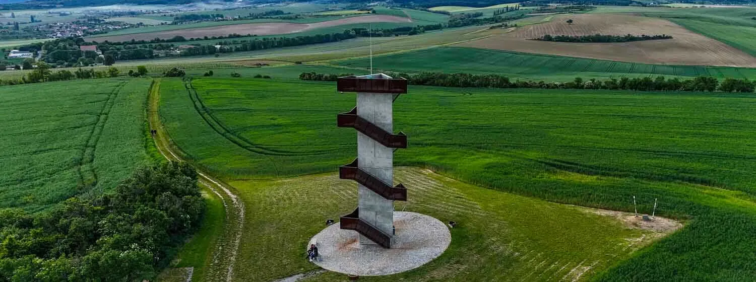 Vydejte se na jih Moravy a objevte Rozhlednu Súsedská v podhůří Chřibů. Tato moderní vyhlídková věž, inspirovaná symbolem triquetra, spojuje historii i místní tradice tří vesnic. Užijte si krásné výhledy na krajinu Kyjovského Slovácka a okolní pohoří.