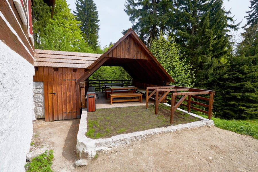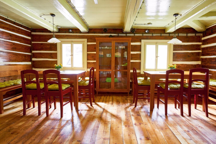 V přízemí roubenky využijte příjemné posezení s občerstvením.