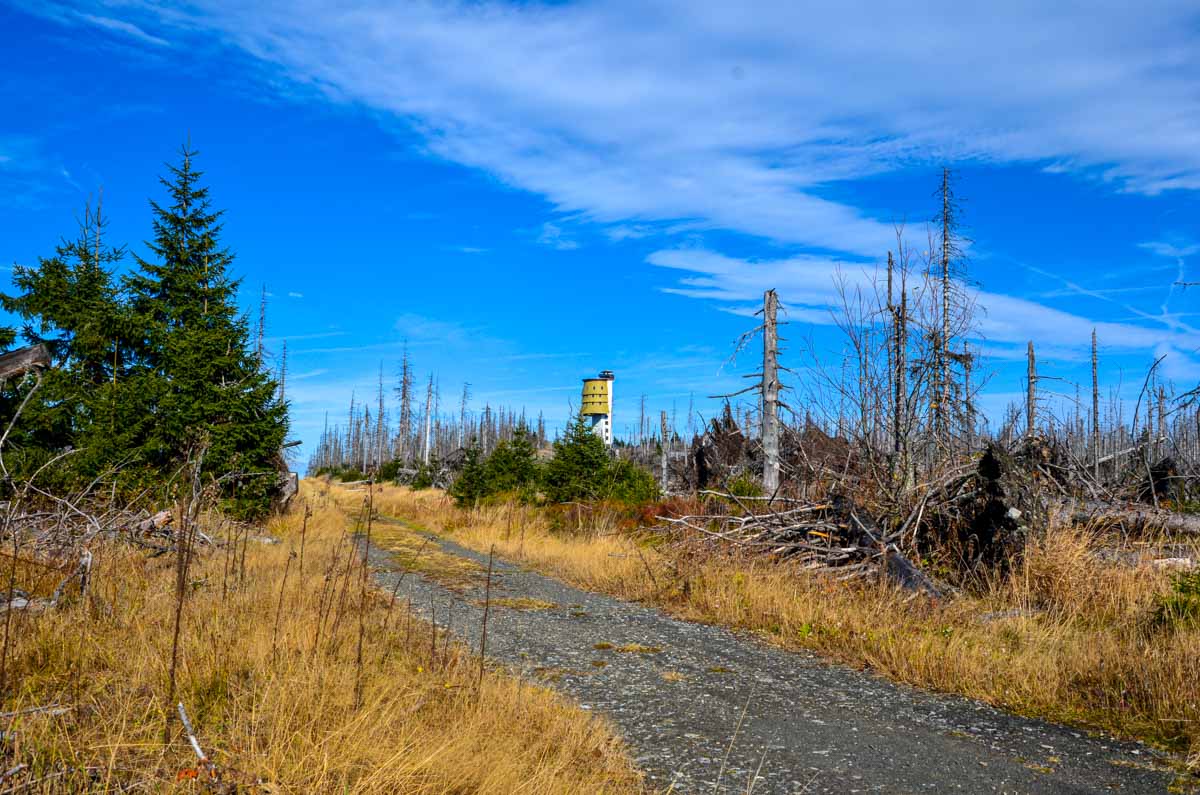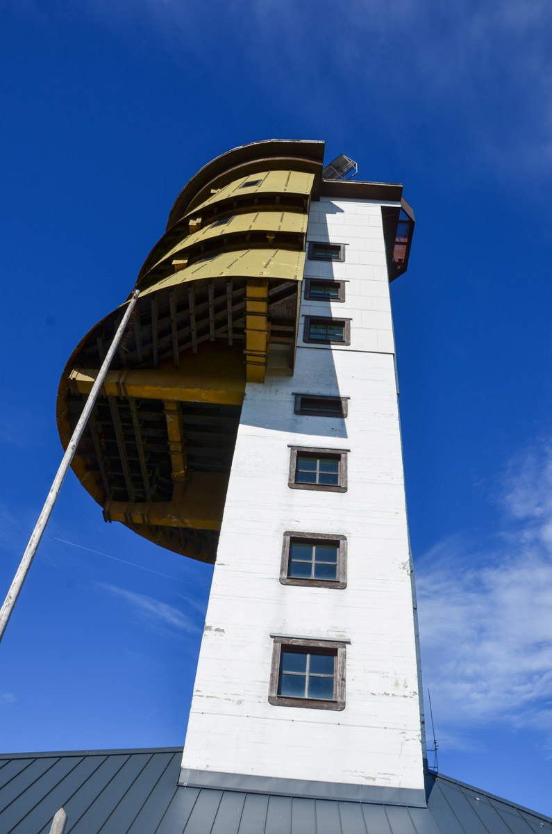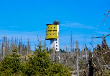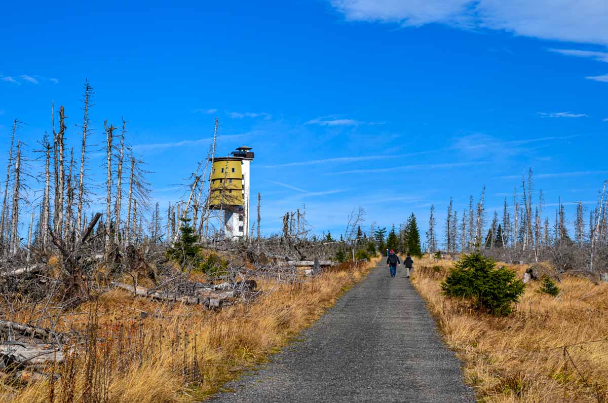 Čtvrtým patrem je už samotná vyhlídková plošina. Abyste se sem dostali, vystoupáte z přízemí rozhledny po 227 schodech a následně po úzkém a strmém žebžíku až na zmíněnou vyhlídkovou plošinu. Odtud uvidíte řadu šumavských vrcholů. Vyznat se v jednotlivých vrcholcích vám pomohou informační panely, na nichž jsou vrcholy popsány. Za příznivého počasí dokonce uvidíte i vzdálené Alpy. Je třeba upozornit na to, že krajina kolem rozhledny vypadá velmi apokalypticky. Jsou zde torza uschlých stromů, některé kmeny jsou vyvrácené, jiné trčí směrem k nebi. Tentokrát si v lokalitě primárně nezařádil jen obávaný šumavský kůrovec, ale hlavně v roce 2007 bouře Kyril.