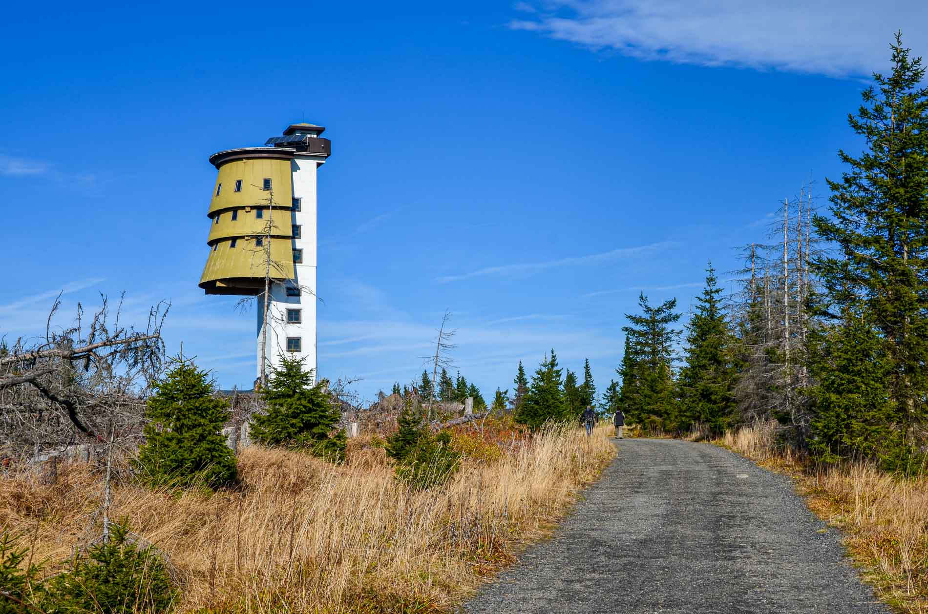 Původně radarovou stanici nechali vystavět představitelé moci v Československé socialistické republice v boji proti imperialismu. A to na vrchu Poledník v 60. letech minulého století. Věž sloužila jako vojenská elektronická ostraha hranice a jako radarová rušička a odposlech rozhlasových stanic na západě. Sledovala i letový provoz v sousední SRN. Fungovala v rámci přísného vojenského utajení a nebyla ani na mapách. V roce 1998 se z radarové stanice po rekonstrukci stala rozhledna pro veřejnost. Je vysoká 37 metrů.