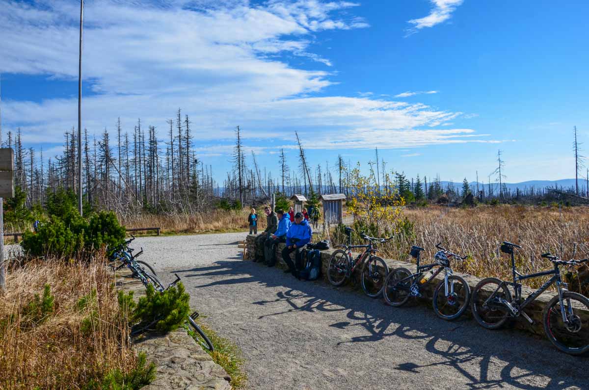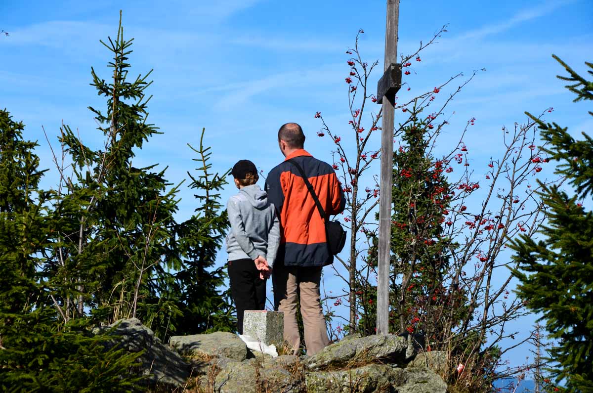 Z obce Prášily se ke kýženému cíli rozhledny Poledník ve výšce 1315 m.n.m můžete vydat například jezerní cestou po červené turistické značce. Půjdete po ní téměř 8 kilometrů. Cesta je místy v terénu dost hrbolatá, ale někteří cyklisté jí zase dávají přednost před pohodlnější cyklotrasou. Prý je to pro ně větší adrenalin, když mohou na horských kolech přejíždět různé kořeny a hrboly. Cestou není žádné občerstvení, proto byste neměli zapomenout na svačinu. Tu si můžete vychutnat na odpočinkovém místě u Prášilského jezera, zhruba v polovině cesty. Od jezera se už napojíte na cyklotrasu a po červené dospějete vrcholu. Zpátky půjdete stejnou cestou a za celý den našlapete 17 kilometrů. Trasa na mapě