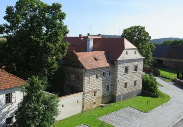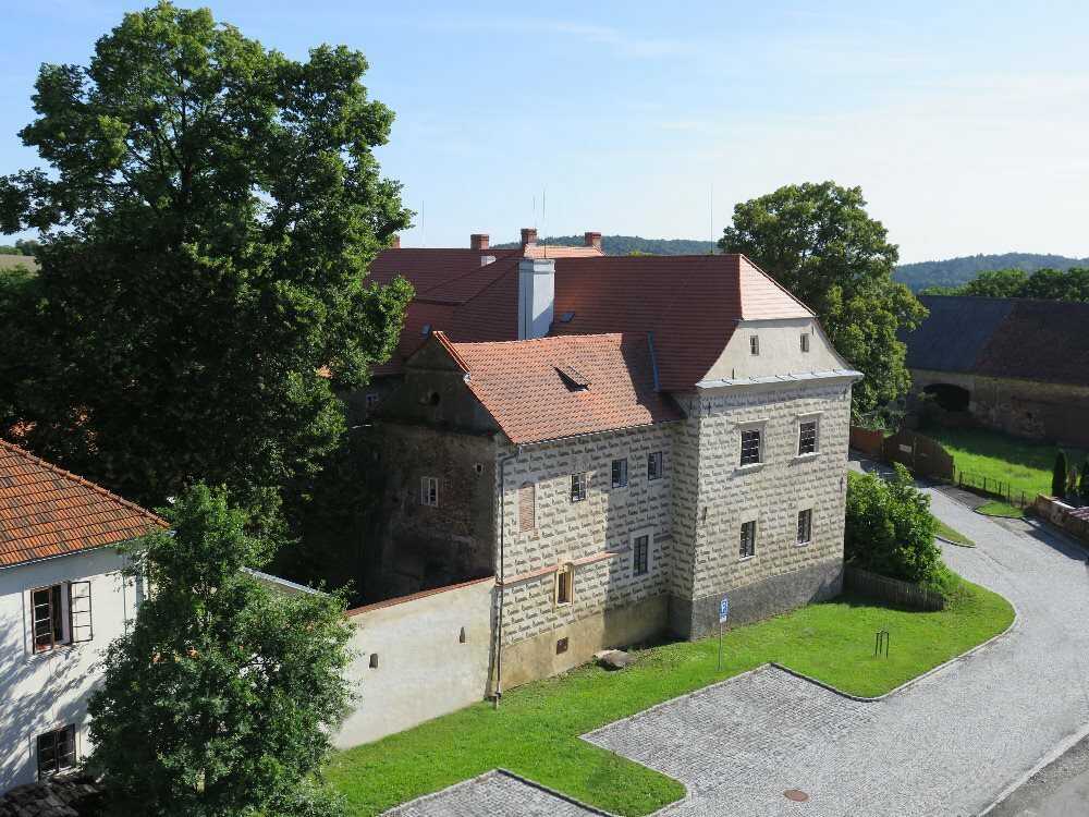V dalším okruhu navštívíte nejstarší části zámku, prostory původní tvrze. Poznáte tak jedinou dochovanou obrannou baštu původní tvrze s expozicí obytného prostoru pána tvrze, kuchyni, potravinový sklep se zbytky původního točitého schodiště do kuchyně. Uvidíte bránu tvrze se zbytky želez od padacího mostu a dochované gotické střílny. Vaší pozornosti neujde ani zázemí obyvatel tvrze a sklepy s expozicí útrpného práva.