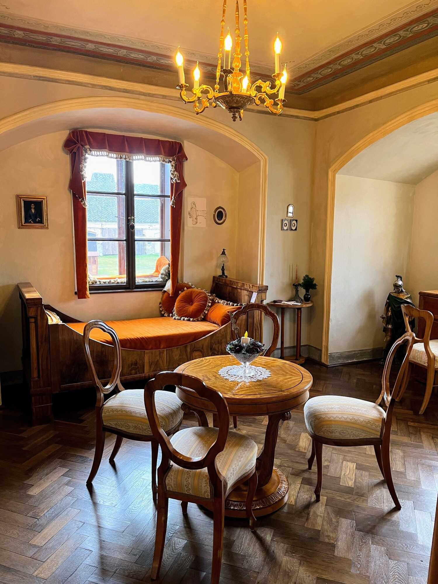Na nádvoří zámku si můžete zakoupit občerstvení a posedět tam.