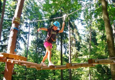 V lázeňských lesích se nachází Přírodní lanové centrum Sv. Linhart. Nabídne vám okruhy s překážkami pro děti i dospělé. Střední okruh má 21 překážek, vysoký okruh ještě o dvě více. Zajímavý je i Lanovkový okruh s 13 sjezdy. Děti potěší Dětský okruh s 15 překážkami a hřiště Lanáček. Junior okruh má 14 překážek. Pro odvážlivce jsou určeny čtyři Top-rope překážky. Prohlédnout si v lesích můžete i ruiny Kostela sv. Linharta, který je nejstarší církevní stavbou města. Od lanového centra k nim půjdete půl kilometru naučnou stezkou.