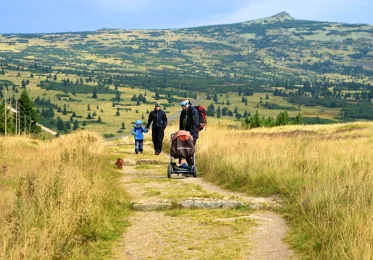 No přece nedaleko Špindlerova Mlýna, kam se určitě také musíte podívat. Pramen Labe se nachází v nadmořské výšce 1387 m n.m. Výlet je dlouhý asi 12 km a začíná u lanovky na Medvědín (1235 m n.m.). Vystupte na horní stanici a pokračujte po žluté TZ přes Sviňské louže na Šmídovu vyhlídku, dále jděte na Vrbatovu boudu a Zlaté návrší (1 413 m n.m.) kolem Mohyly Hanče a Vrbaty až k Ambrožově vyhlídce a Pančavskému vodopádu. Odtud je to již kousek k Labské boudě a k Prameni Labe. Na křižovatce turistických tras se nacházejí skruže s přítokem i odtokem vody, kamenná stěna s barevnými erby 26 významných měst, jimiž Labe na své cestě dlouhé 1154 km do Severního moře protéká. Je zde také umístěna dřevěná socha Alegorie vody. Zpáteční cestu zvolte kolem rozcestí U Čtyř pánů, opět přes Vrbatovu boudu až na Medvědín a lanovkou sjeďte do Špindlerova Mlýna.