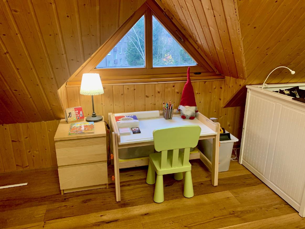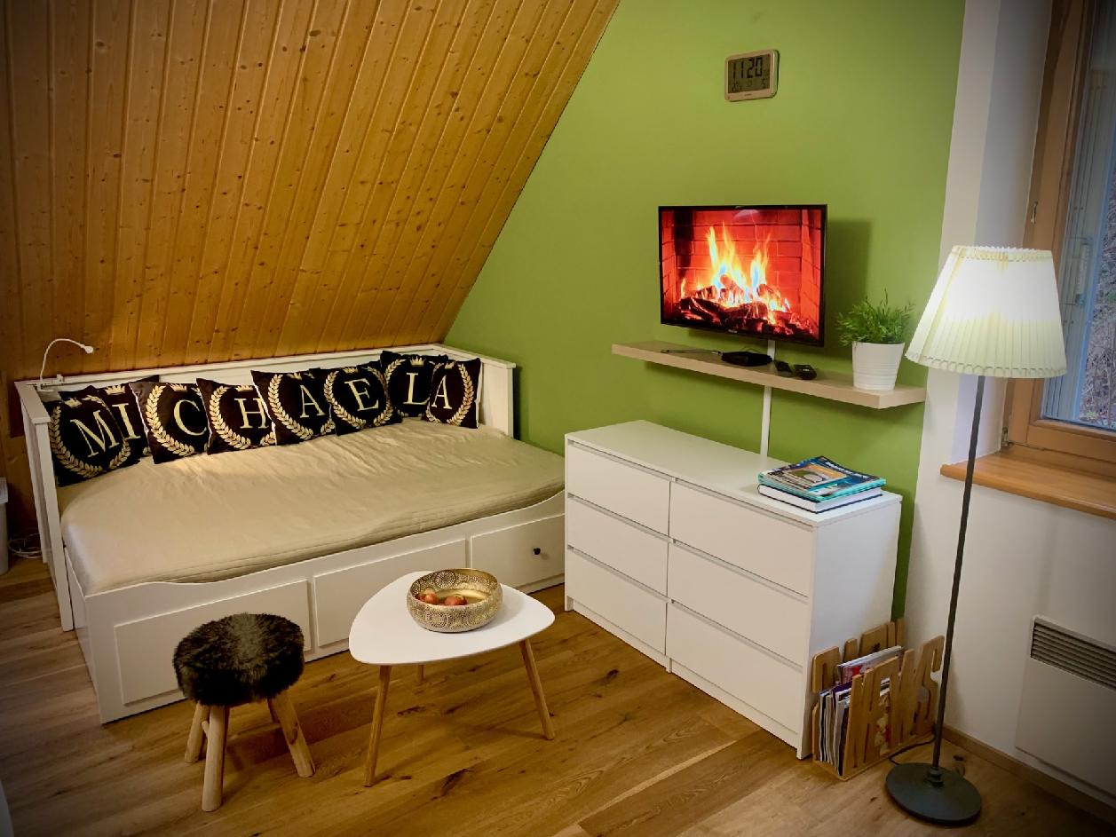 Apartmán velmi hezky vybaven moderním nábytkem. Oceníte domácí atmosféru a světlost interiérů. Kapacita apartmánu je čtyři osoby plus miminko. Rozloha apartmánu je 35m2. V apartmánu naleznete prostornější předsíň s odkládacím prostorem, obývací místnost, koupelna (sprcha, umyvadlo, fén) a samostatným wc. V obývací místnosti je manželská postel, rozkládací postel Hemmes, jídelní stůl a plně vybavená kuchyňská linka. Samozřejmě nechybí ani LCD televize s O2TV a WI-FI připojení k internetu. Pro děti je zřízený menší dětský koutek s hračkami, dětským stolem, židlemi a výtvarnými potřebami. Pokud budete ubytování s miminkem, přijde vám vhod dětská postýlka. Okna apartmánu směřují do klidné části Rokytnice. Atmosféru příjemného ubytování doplňuje kvalitní dubová podlaha. V objektu je zřízena lyžárna / úschovna kol a také uzamykatelná skříň na lyžařské vybavení. Parkování mimo sezónu je možné před domem, v zimní sezóně na centrálním parkovišti P4 (100 Kč/den).