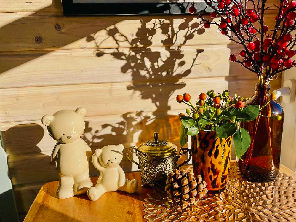 Zimní minidomeček je designovaný ve stylu zimní, adventní, hřejivé atmosféry. Je vybaven teplými dekami, plyšovým povlečením, svíčkami, lucernami. V barelech je přichystaná pitná voda z vrtu bez chemie. Koupelna se sprchou a wc je vzdálena 80 metrů v hlavní budově.