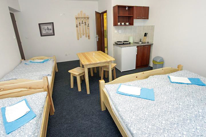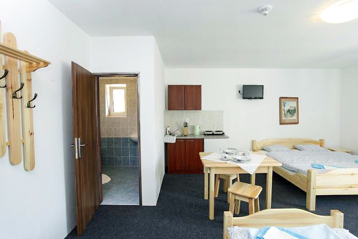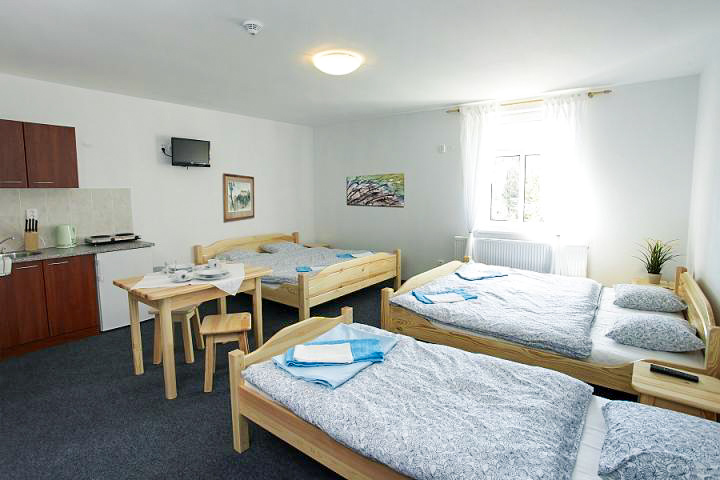 Objekt nabízí 6 samostatných apartmánů, každý s vlastní koupelnou, kuchyňským a jídelním koutem. Apartmány jsou vybaveny LCD televizí, lednicí a Wi-Fi připojením. Celková kapacita je přibližně 29 osob s možností přistýlek. Hosté mohou využívat také velkou společnou plně vybavenou kuchyň s jídelnou, společenskou místnost a dětský hrací kout s hračkami, hrami a knihami. Pro nejmenší jsou k dispozici dřevěné postýlky včetně povlečení a jídelní židličky.