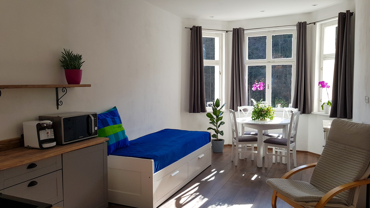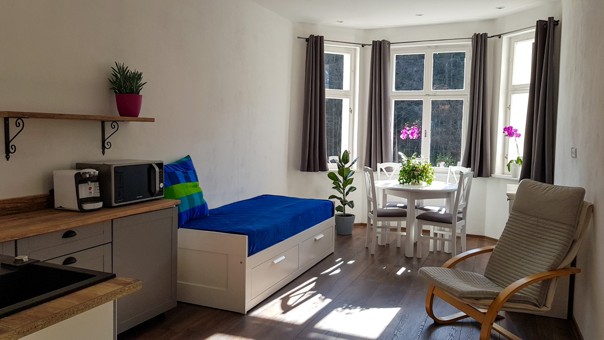 Nabízíme ubytování ve stylově zařízených apartmánech v nově zrekonstruované vile se zahradou a venkovním bazénem. Apartmány naleznete ve Svobodě nad Úpou na cestě směrem do Janských lázní. Klidné místo, dostatek soukromí s romantickou zahradou plné zeleně. Kousek od apartmá se nachází Farmapark Muchomůrka, parádní zábava pro vaše děti. celý popis