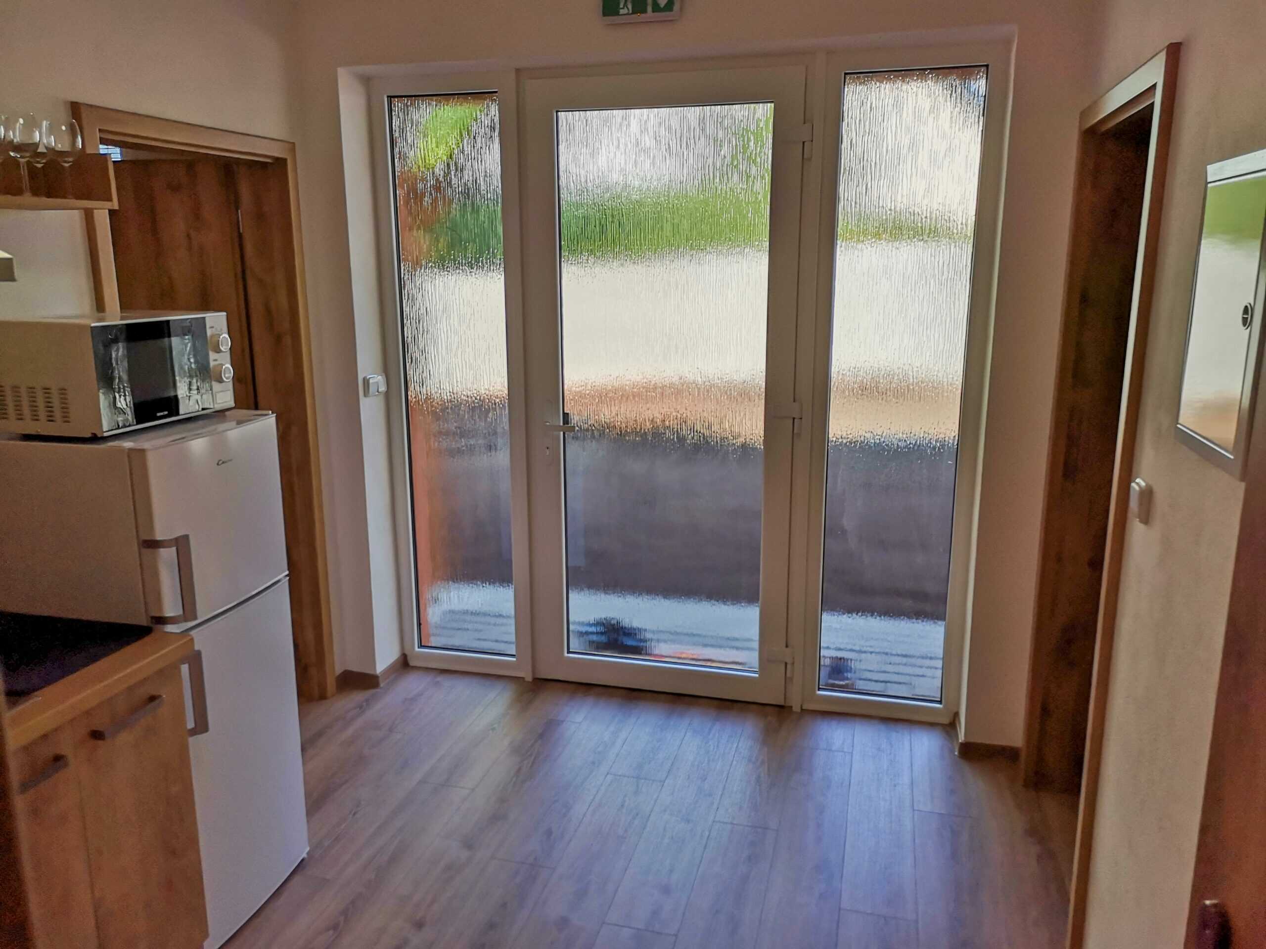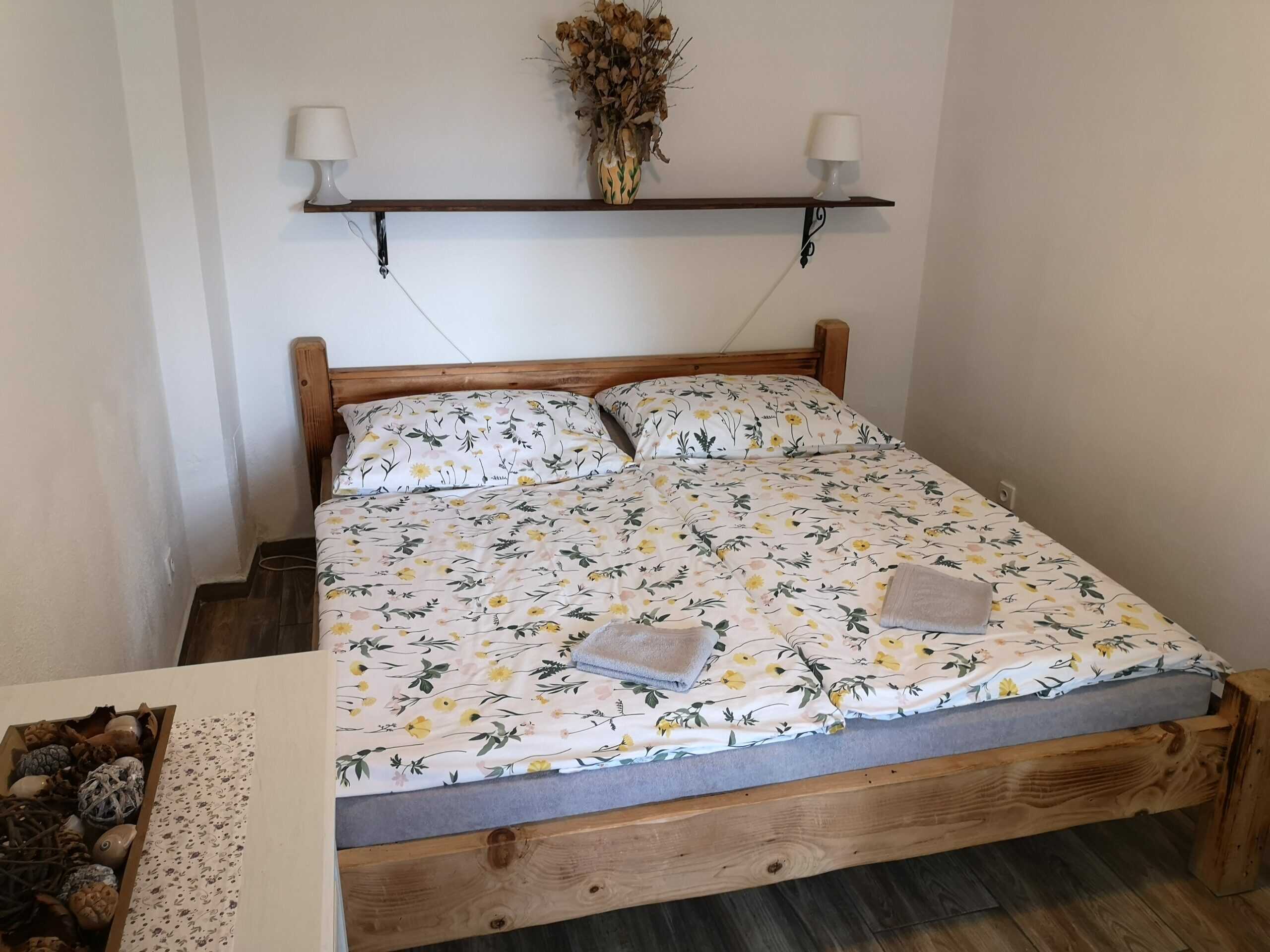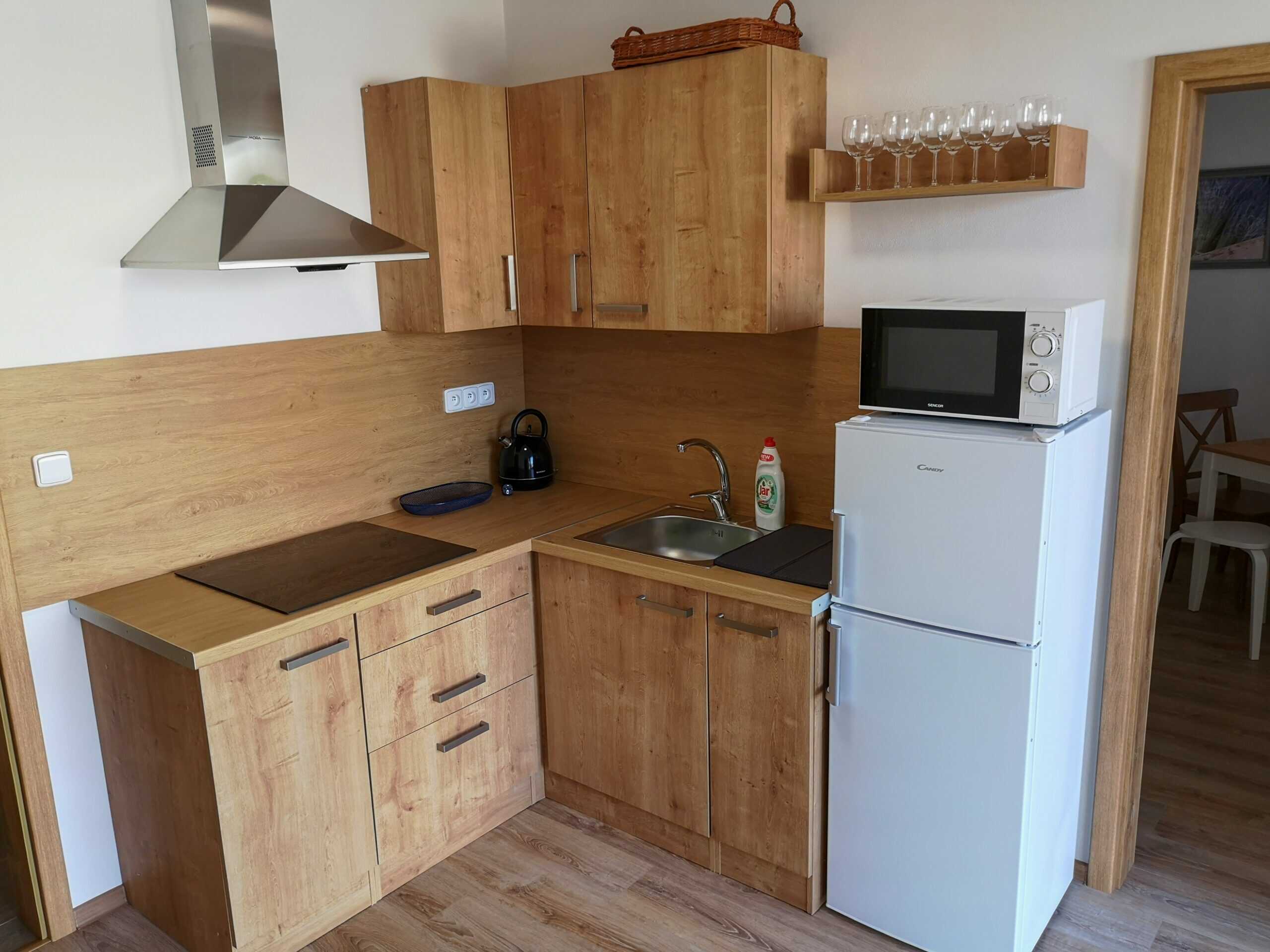 Apartmán č. 1 nabízí útulnou 2-lůžkovou ložnici s manželskou postelí a druhou místnost s rozkládacím gaučem, který se dá snadno proměnit na plnohodnotné dvoulůžko. K dispozici je také minikuchyňka vybavená dvouplotýnkou, mikrovlnnou troubou, rychlovarnou konvicí, lednicí s mrazničkou a jídelním koutem. Součástí apartmánu je vlastní koupelna se sprchovým koutem a toaletou.