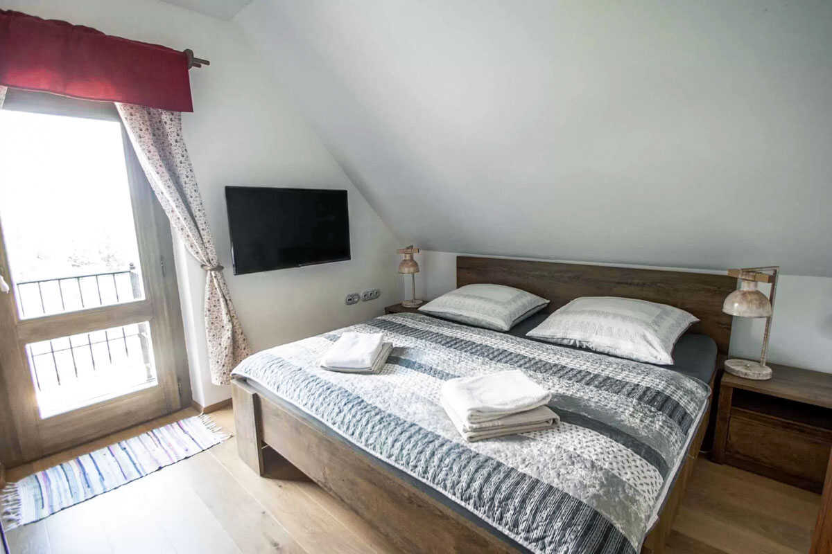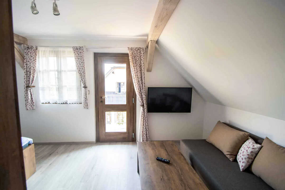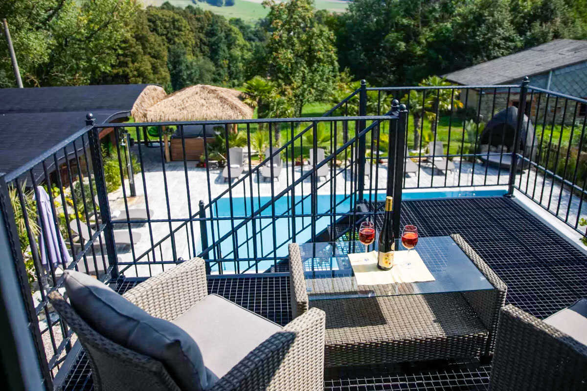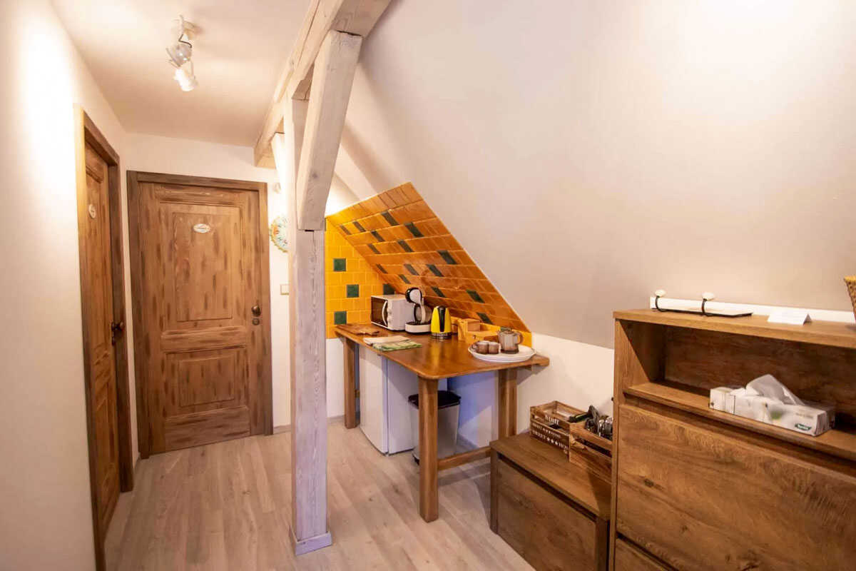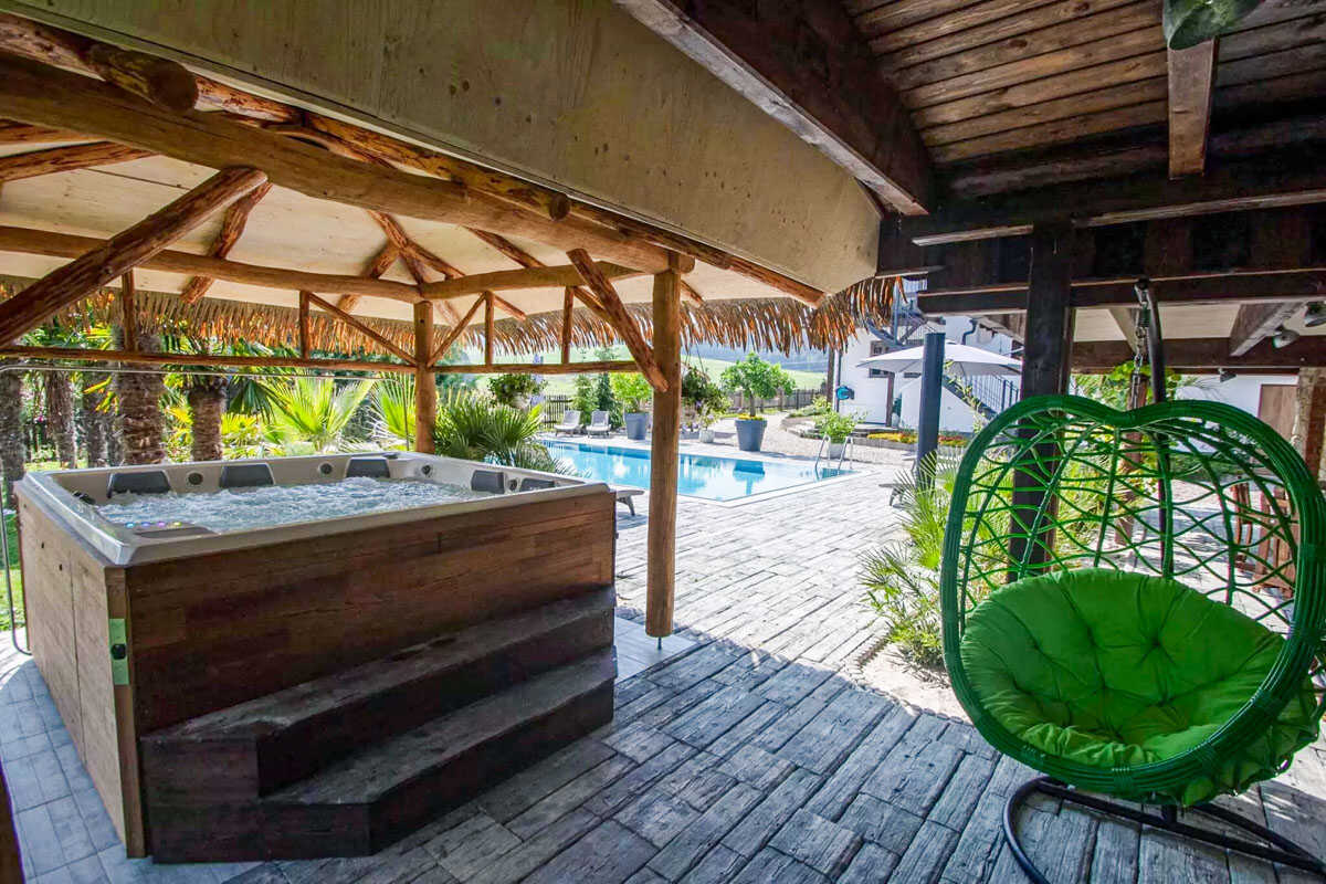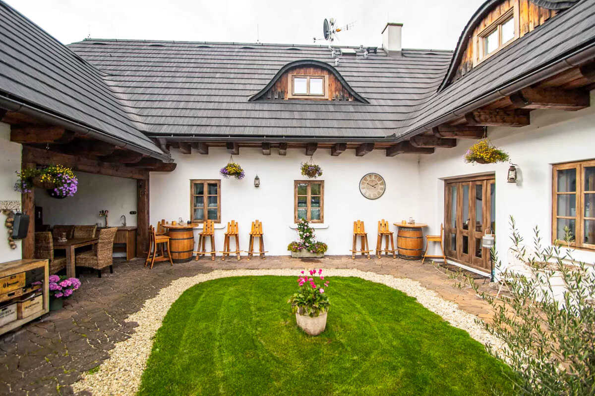 K dispozici je pět stylově zařízených apartmánů s celkovou kapacitou až 20 osob. Dva z nich jsou určeny především pro páry – mají manželskou postel, koupelnu a příjemné posezení. Jeden z těchto pokojů, dvoulůžkový pokoj Deluxe, je prostornější a pyšní se velkou koupelnou, ideální pro chvíle relaxace po výletu či cyklistice. Další pokoje jsou vhodné pro rodiny – například rodinný apartmán s kapacitou až šesti osob tvoří dva propojené pokoje s balkonky, odkud se otevírá krásný výhled na zahradu a venkovní bazén. Stejně tak apartmán se dvěma ložnicemi nabízí ideální prostor pro 1–4 osoby, které ocení klid, pohodlí a výhled do přírody. Nechybí ani podkrovní pokoj s výhledem na bazén, který působí útulně a má samostatný vstup i balkon s posezením.