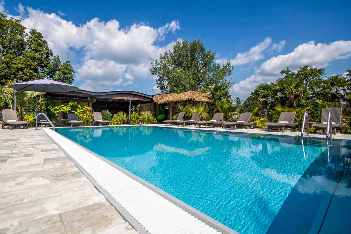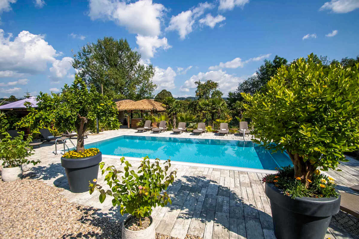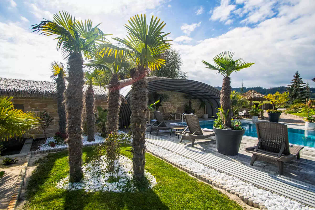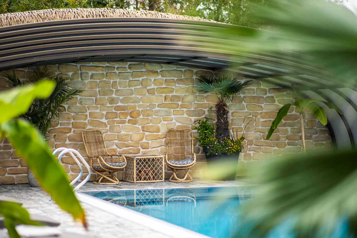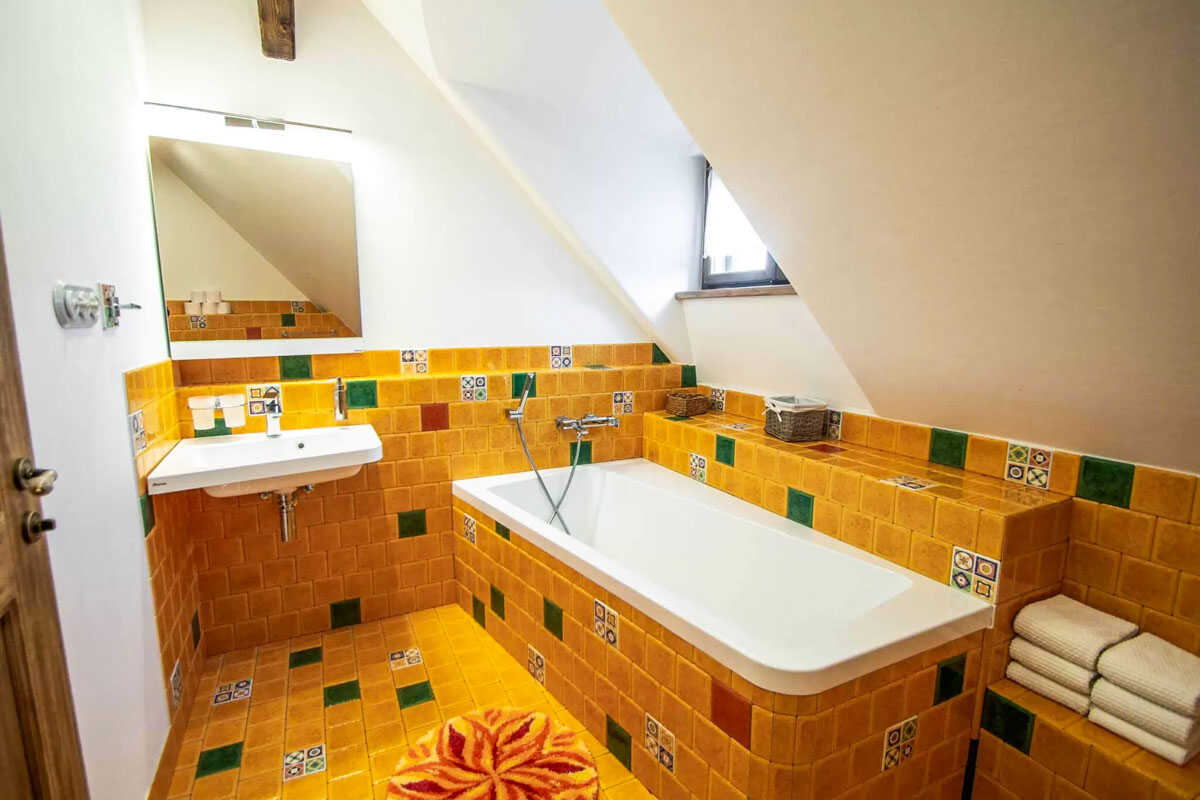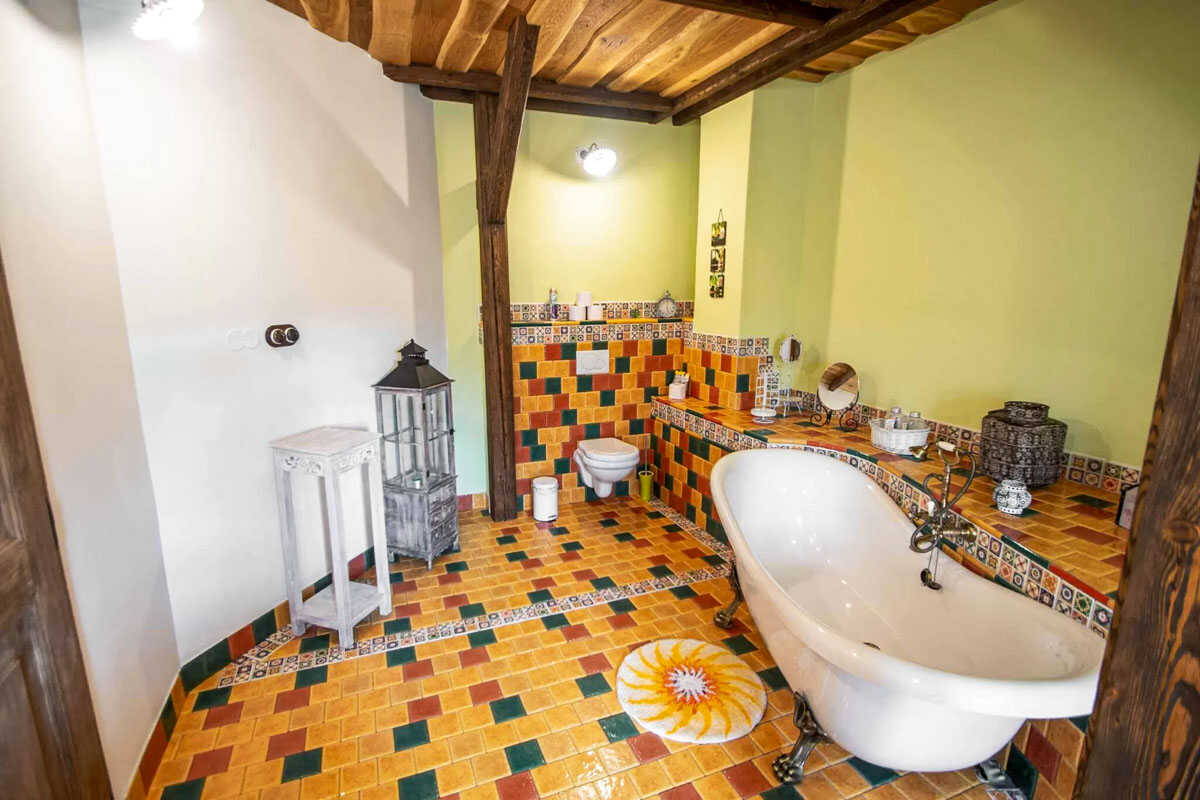 K dispozici je pět stylově zařízených apartmánů s celkovou kapacitou až 20 osob. Dva z nich jsou určeny především pro páry – mají manželskou postel, koupelnu a příjemné posezení. Jeden z těchto pokojů, dvoulůžkový pokoj Deluxe, je prostornější a pyšní se velkou koupelnou, ideální pro chvíle relaxace po výletu či cyklistice. Další pokoje jsou vhodné pro rodiny – například rodinný apartmán s kapacitou až šesti osob tvoří dva propojené pokoje s balkonky, odkud se otevírá krásný výhled na zahradu a venkovní bazén. Stejně tak apartmán se dvěma ložnicemi nabízí ideální prostor pro 1–4 osoby, které ocení klid, pohodlí a výhled do přírody. Nechybí ani podkrovní pokoj s výhledem na bazén, který působí útulně a má samostatný vstup i balkon s posezením.