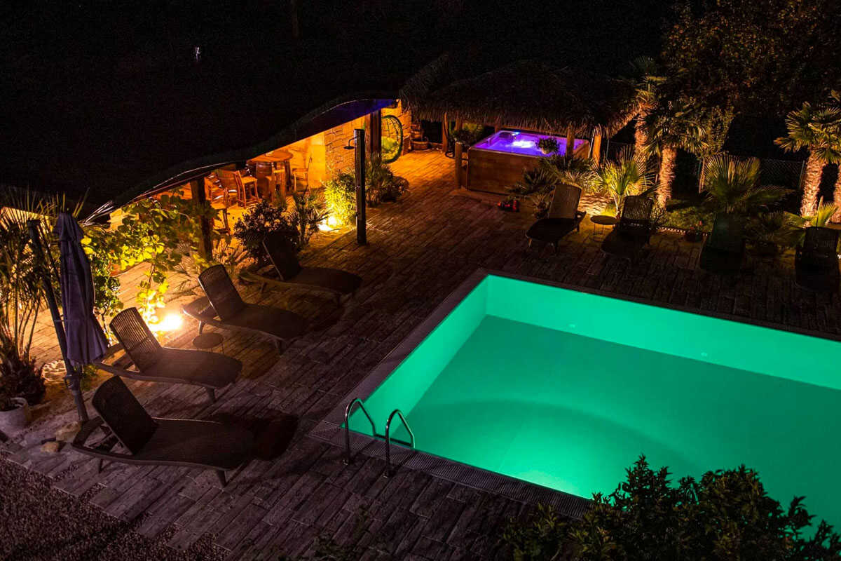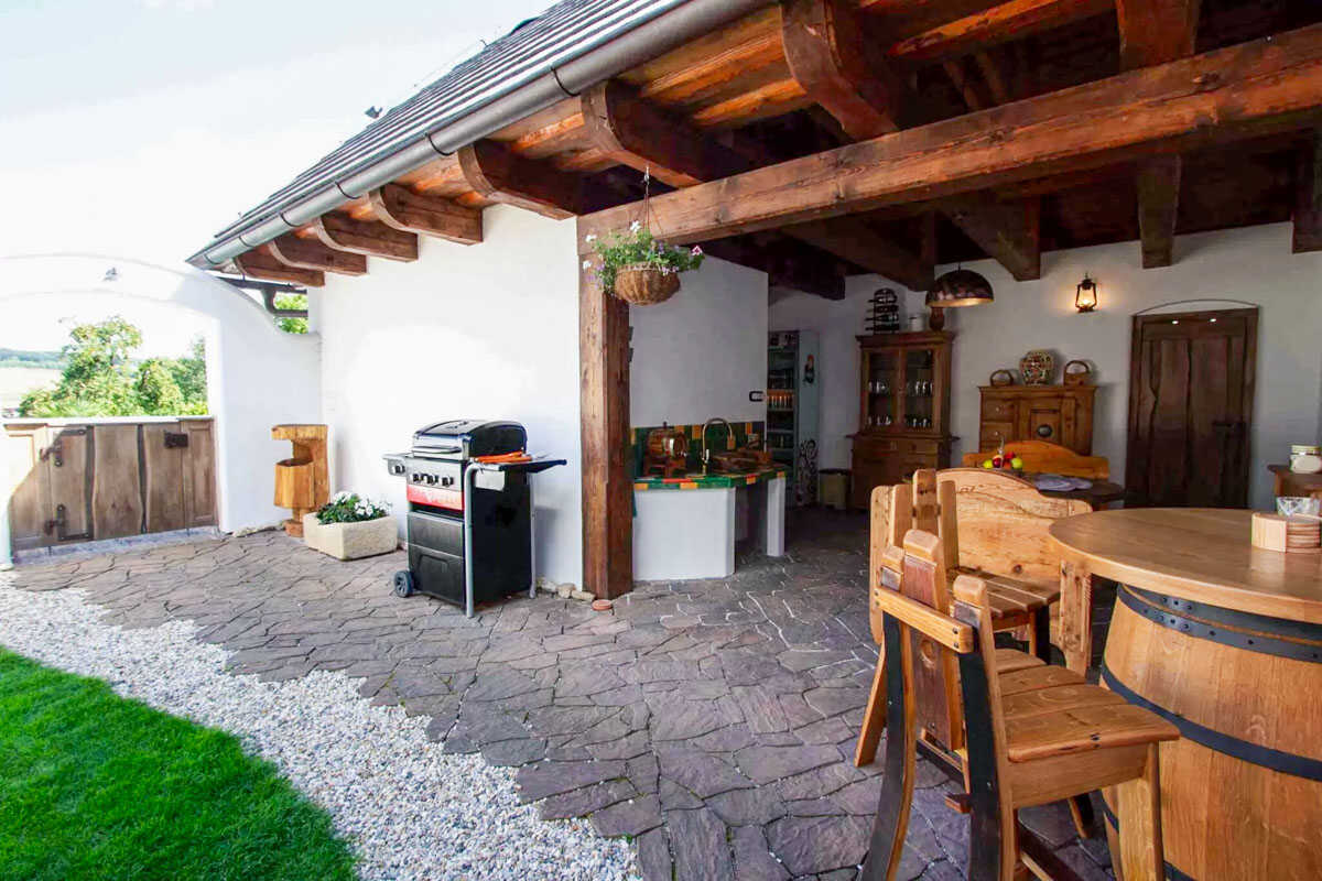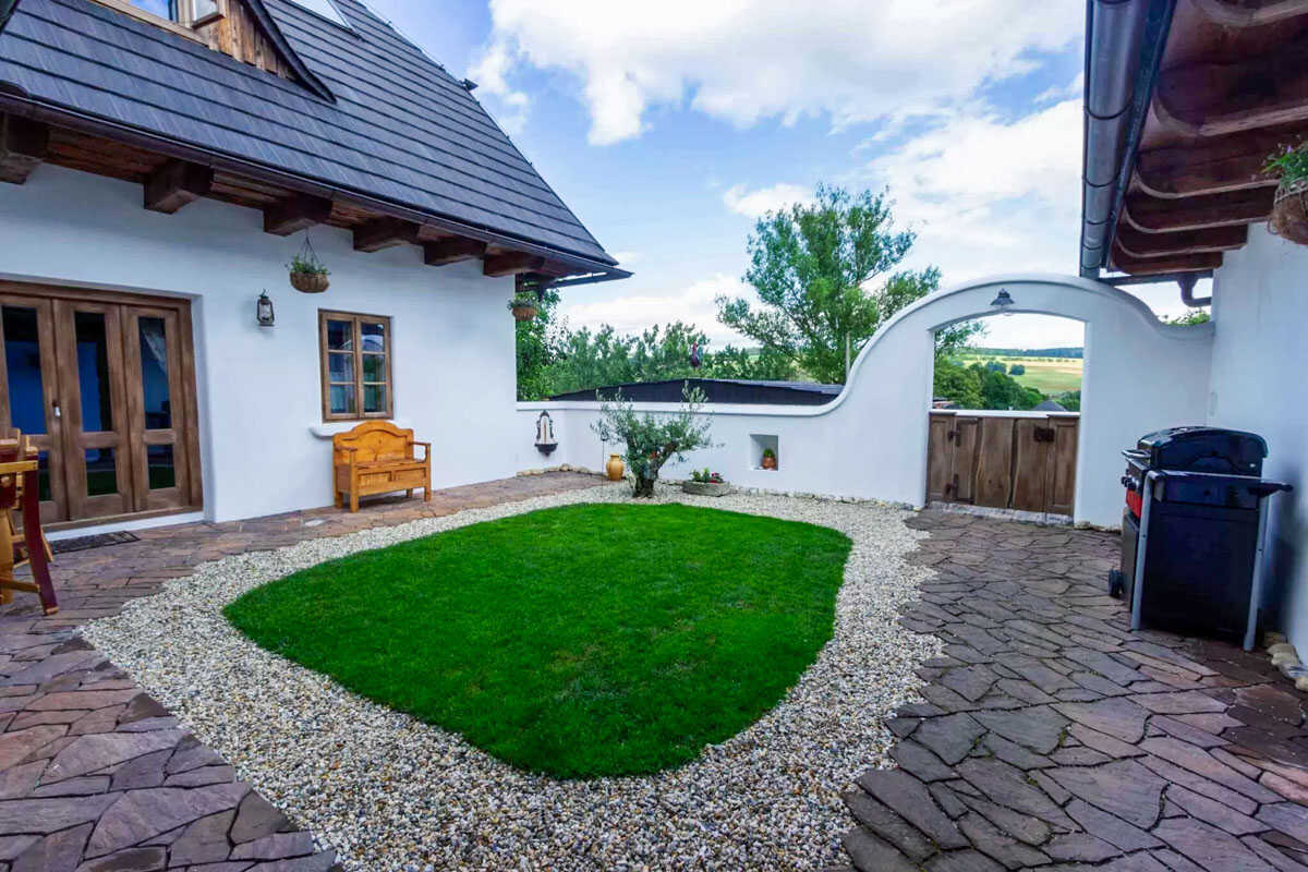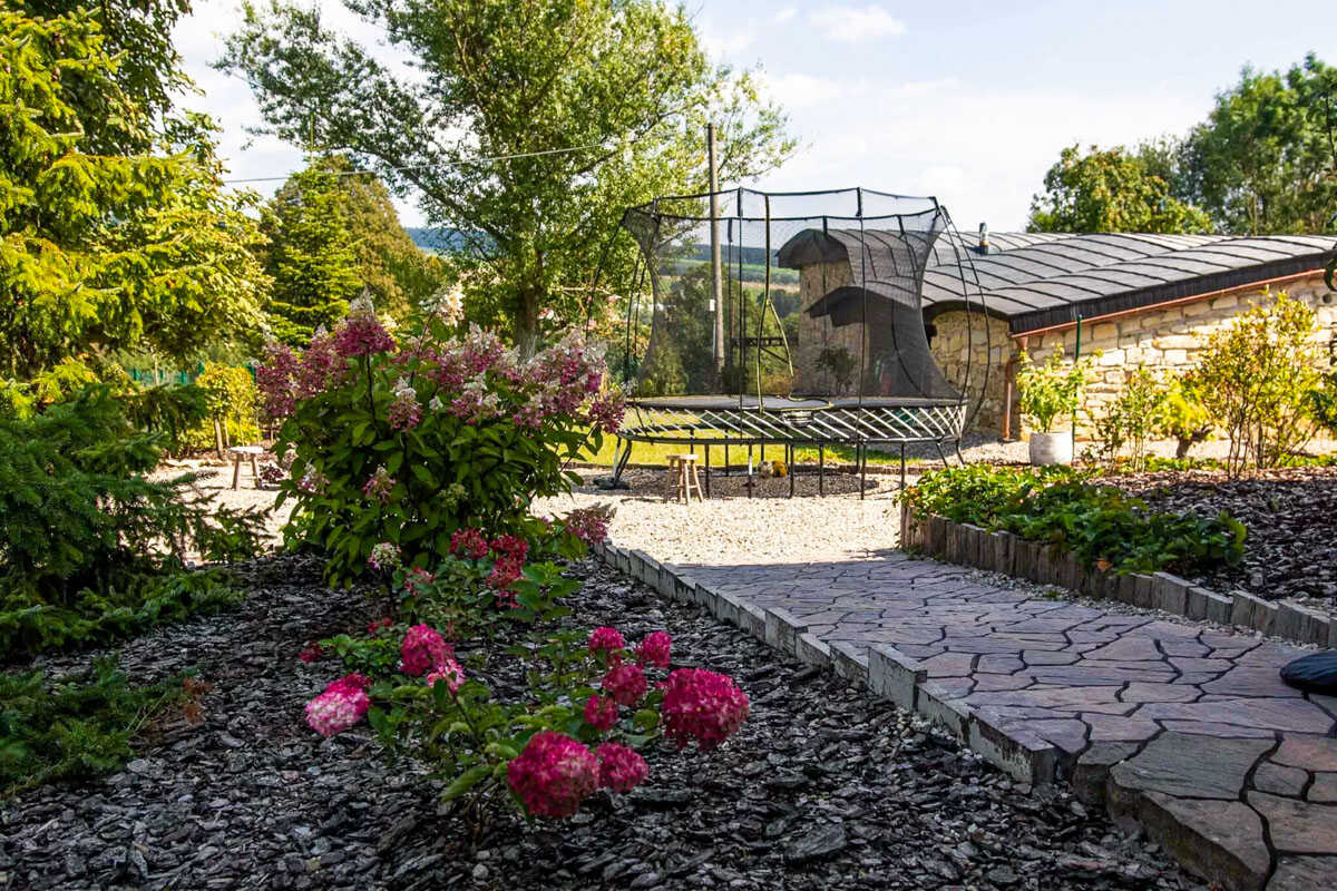 Na krásně udržované zahradě se nachází venkovní posezení s grilem a vyhřívaný bazénem se slanou vodou, který nabízí osvěžení v letních měsících. Pro chvíle odpočinku i romantické večery je zde navíc k dispozici sauna a vířivka, kde si můžete dopřát dokonalý klid a regeneraci. Děti se zabaví v bezpečném venkovním prostoru a pro rodiny s malými dětmi je možné zapůjčit dětskou postýlku zdarma. Samozřejmostí je také možnost ubytování menších domácích mazlíčků po předchozí domluvě.