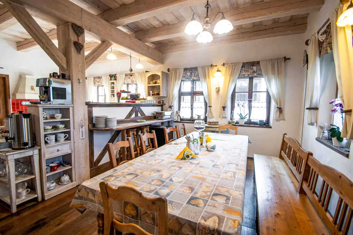 Každý apartmán je vybaven vlastní koupelnou, televizí, Wi-Fi připojením, šatní skříní a pohodlnými postelemi. Hosté mohou využít také plně vybavenou kuchyňku společnou pro více apartmánů, případně si objednat snídaně formou švédského stolu z čerstvých lokálních surovin. K dispozici je také společenská místnost až pro 15 osob. Nechybí v ní televizor s HDMI připojením, posezení a kamna.