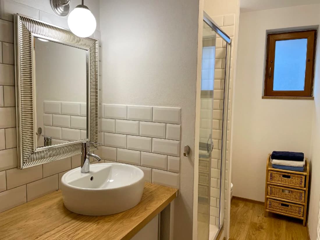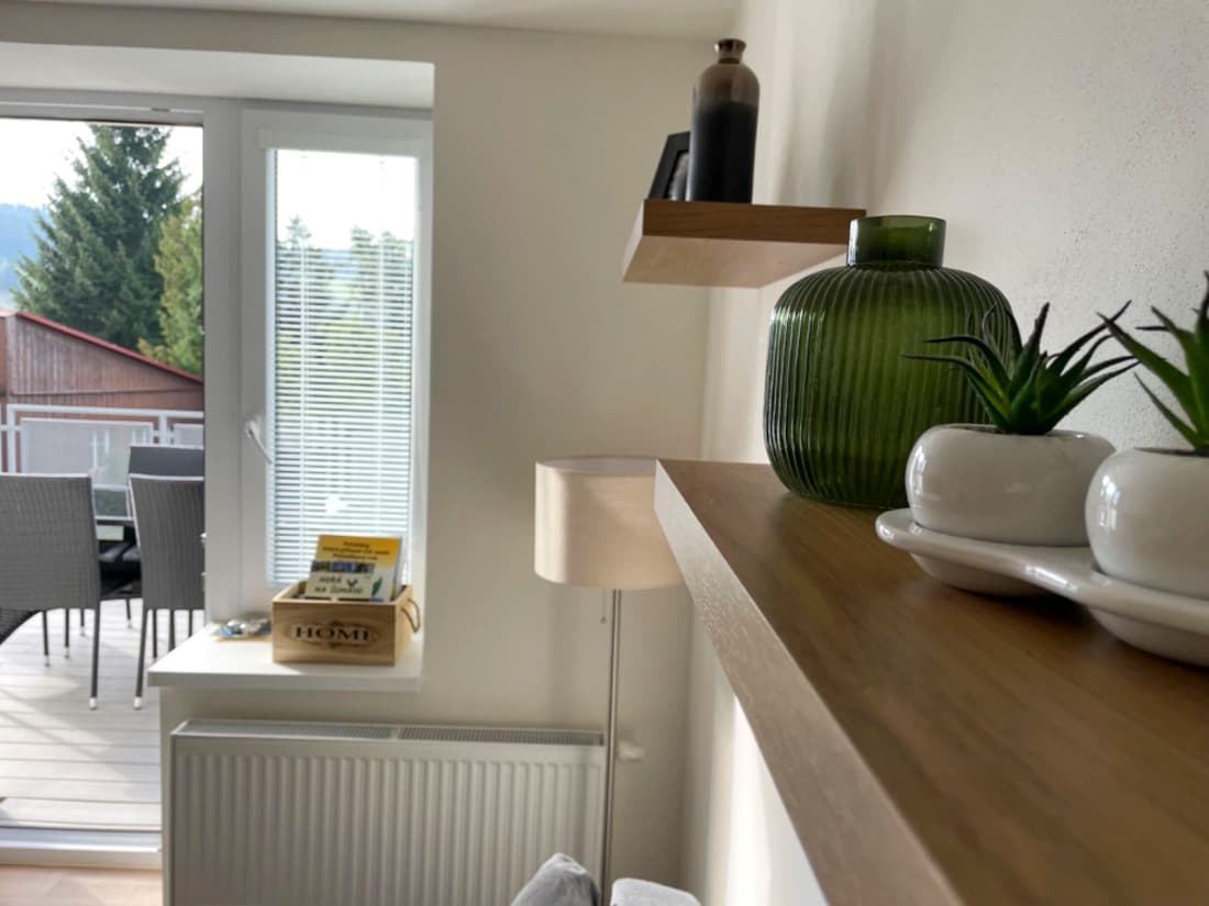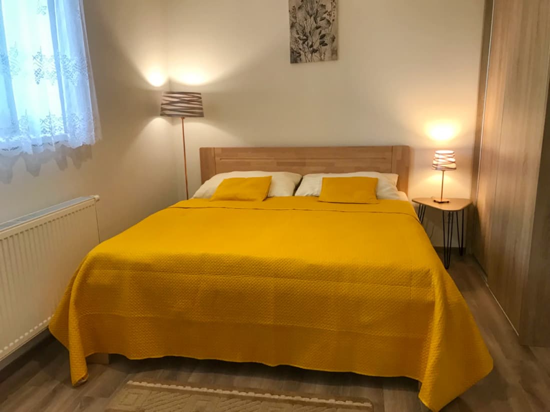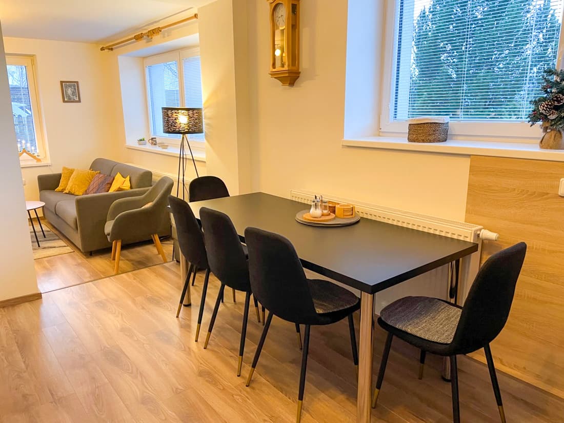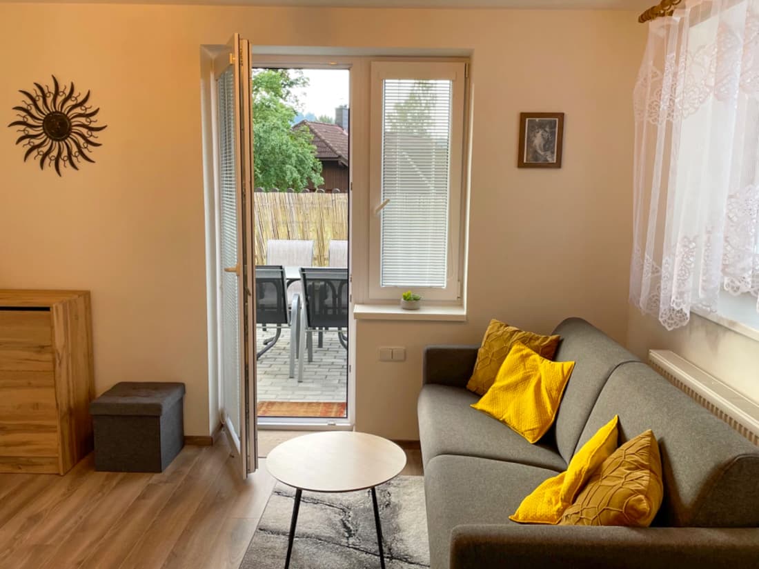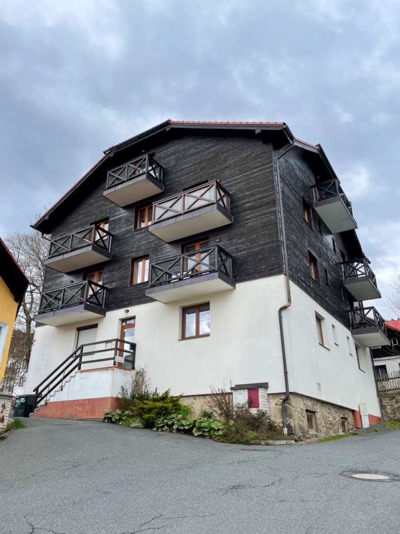 Slunný přízemní apartmán s vlastním samostatným vchodem a oplocenou předzahrádkou nabízí krásný výhled na Velký Javor. Hosté zde ocení venkovní posezení se slunečníkem a možnost grilování. Dispozice zahrnuje samostatnou ložnici s masivní manželskou postelí a přistýlkou, obývací pokoj s rozkládací pohovkou pro dvě osoby a plně vybavenou kuchyň s myčkou, troubou i kávovarem Nespresso. Samozřejmostí je koupelna se sprchovým koutem, samostatné WC, vysokorychlostní WiFi, vlastní parkovací místo a uzamykatelná sklepní kóje na lyže či kola s vysoušečem bot.
