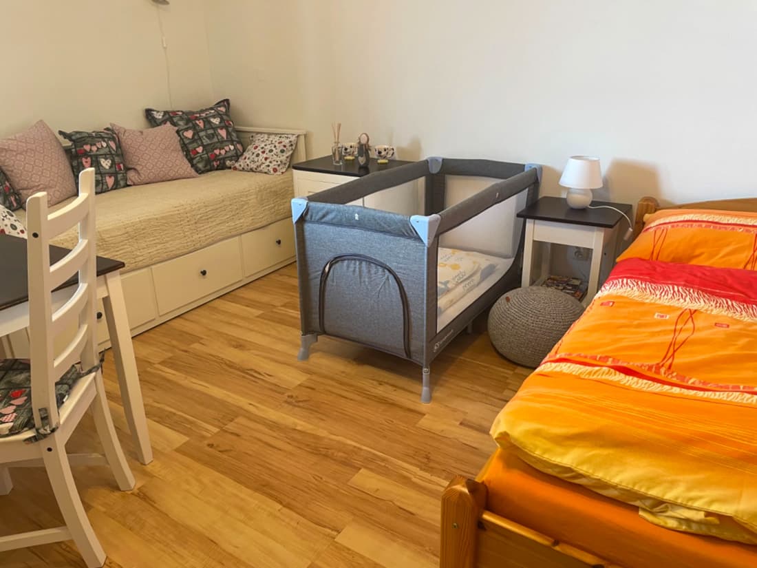 | zapůjčení nové dětské cestovní postýlky s přidanou matrací a lůžkovinami | 300 Kč | / | den |