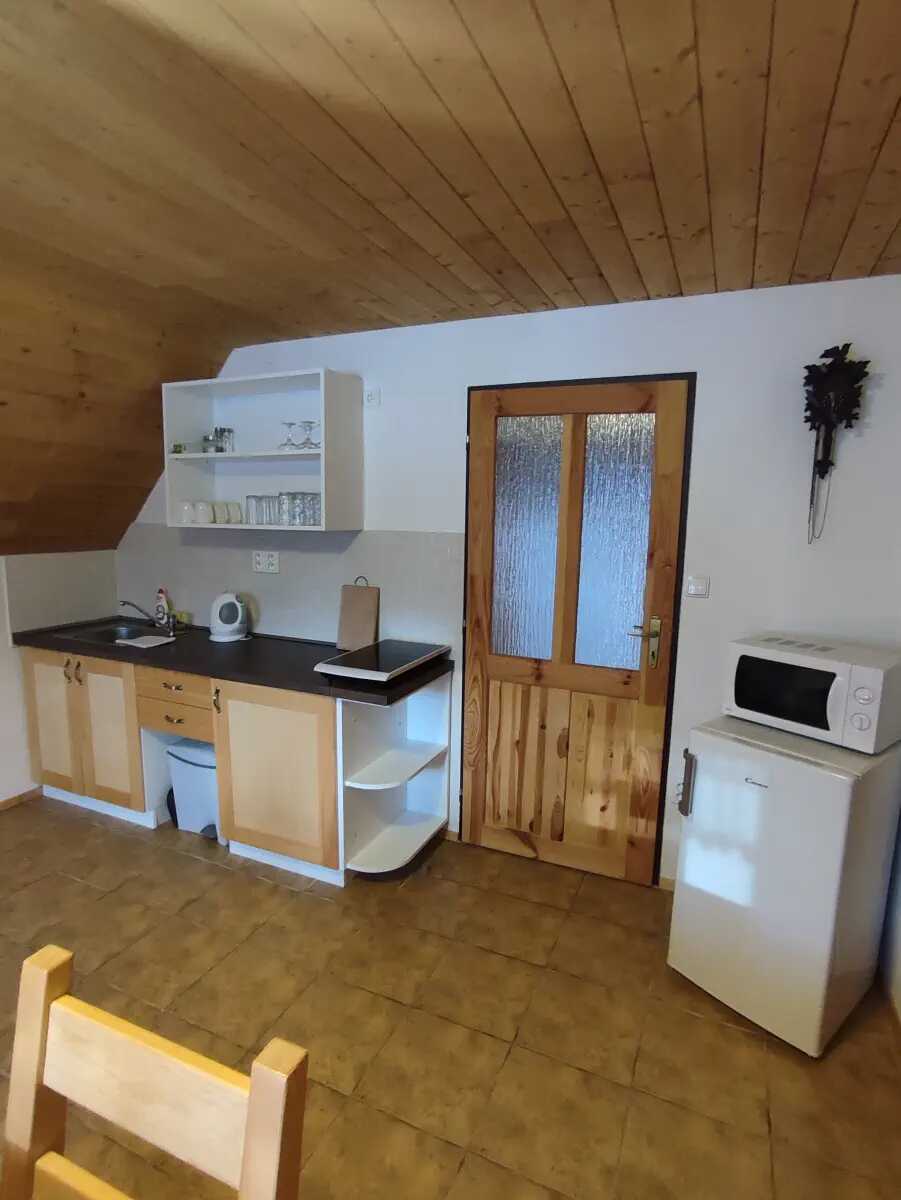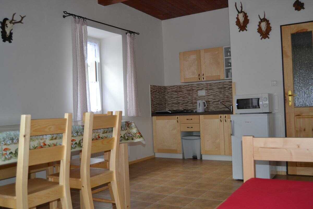 Vybírat můžete ze sedmi apartmánů, které jsou tří, čtyř, pěti nebo šestilůžkové. Každý apartmán má obývací pokoj s kuchyňským a jídelním koutem. V obývacím pokoji je umístěno jedno samostatné lůžko, ostatní lůžka jsou v ložnici. Některé apartmány mají v obývacím pokoji kamínka, která vám zpříjemní atmosféru chladných večerů. K dispozici je televizor a WIFI internet. Kuchyňský kout v obývacím pokoji je vybaven elektrickým vařičem, rychlovarnou konvicí, mikrovlnnou troubou, ledničkou a kuchyňským nádobím a náčiním. Každý apartmán má svoji vlastní koupelnu se sprchovým koutem, umyvadlem a wc. Ručníky, mýdlo a toaletní papír jsou k dispozici.