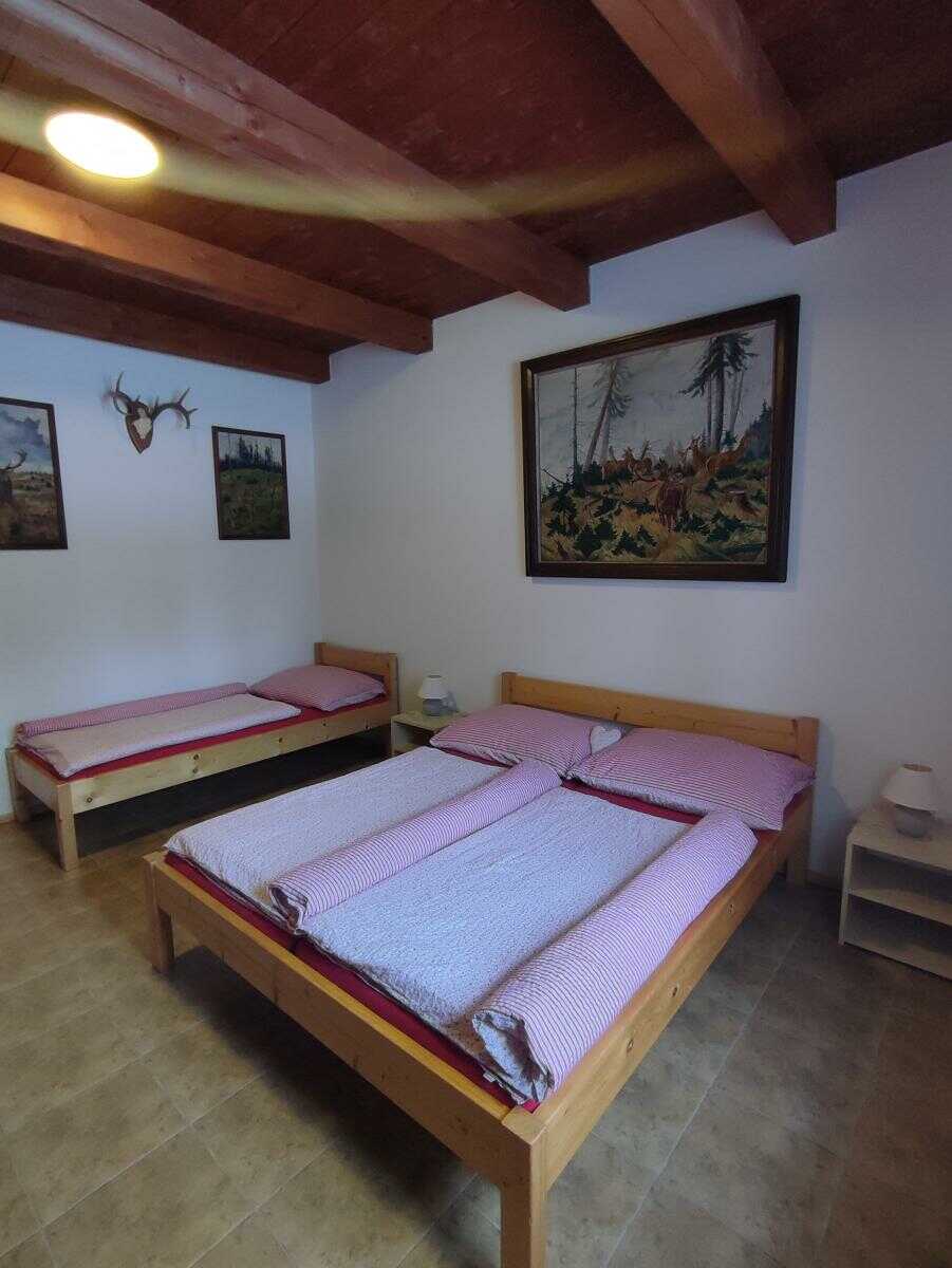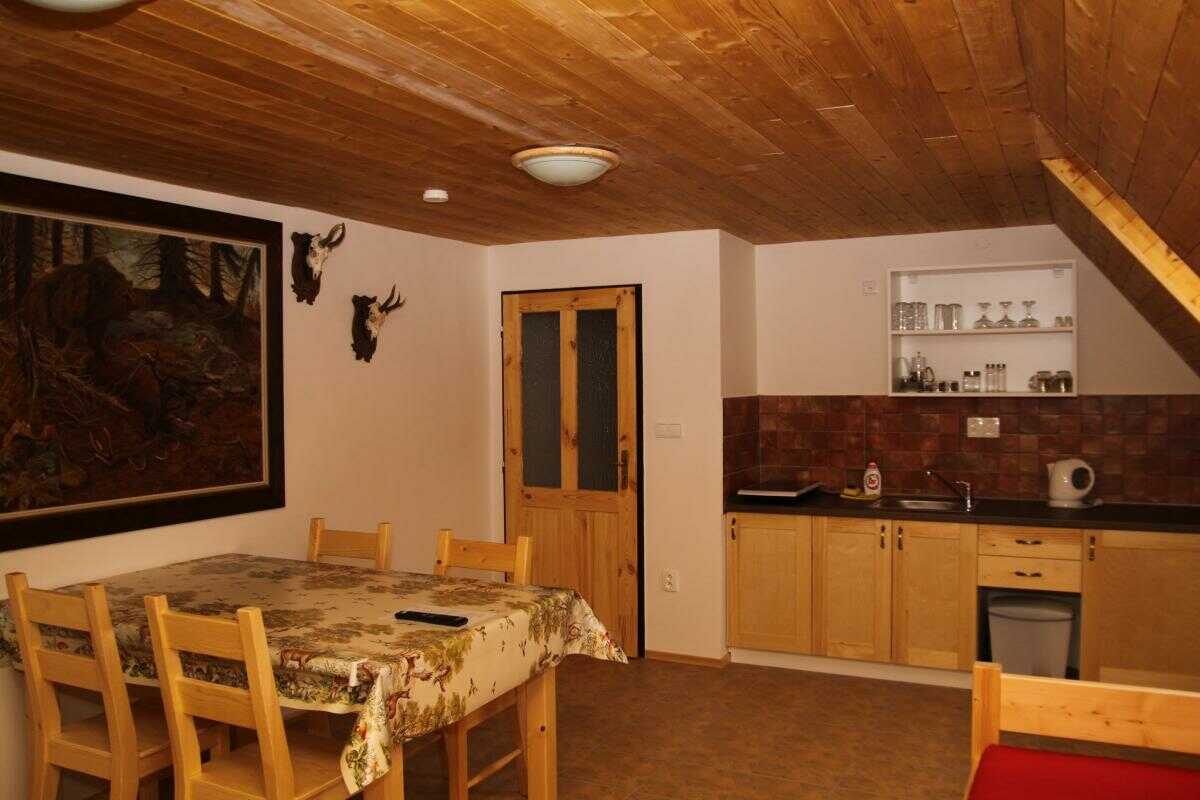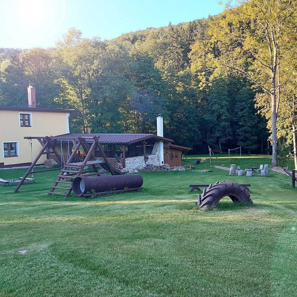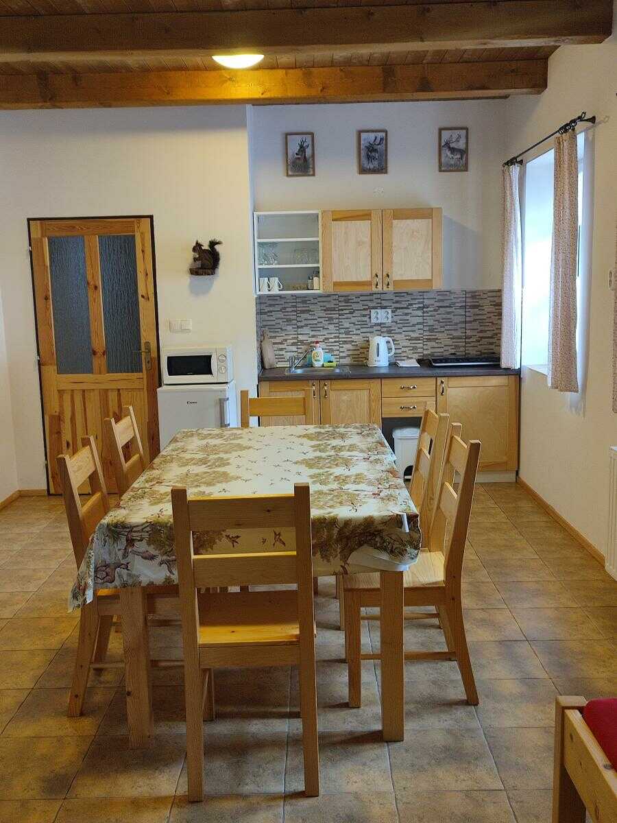Pokud přijedete jako větší skupinka, která by ráda uspořádala menší oslavu, můžete si za cenu po dohdě pronajmout společenskou místnost. Ta má kapacit 20 osob. Je vybavená krbem, televizí a barem. U domu je prostorná zastřešená pergola s posezením a krbem, na zahradě jsou čtyři ohniště. Zejména děti, ale i jejich rodiče ocení velké dětské hřiště na zahradě, které má opravdu mnoho pěkných herních prvků. Kromě pískoviště, skluzavky, houpačky zde děti najdou lanový park, slackline a horolezeckou stěnu. Na zahradě si můžete zahrát volejbal, nohejbal, badbington, fotbal, stolní tenis a další zahradní hry. Automobily můžete parkovat přímo u domu.