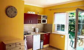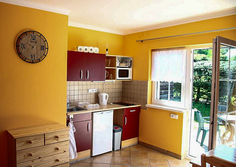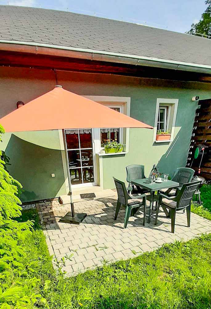 Apartmány v klidné části obce Potůčky jsou ideálním místem pro hosty, kteří hledají pohodové zázemí na hranici Krušných hor a chtějí si užít pobyt v komfortním, prakticky zařízeném prostředí. Každý ze dvou apartmánů je určen až pro čtyři osoby. Oceníte samostatnou ložnici s manželskou postelí, obývací pokoj s pohodlnou rozkládací pohovkou i plně vybavený kuchyňský kout, kde nechybí vařič, mikrovlnná trouba, lednice ani dětská jídelní židlička. Každý apartmán má vlastní sociální zařízení se sprchovým koutem, přímý vstup na oddělenou terasu s posezením a také svůj vlastní gril na uhlí. Hosté mají k dispozici televizi, Wi-Fi a praktický uzamykatelný prostor pro uložení kol či lyží, který je stejně jako parkoviště monitorovaný kamerovým systémem.