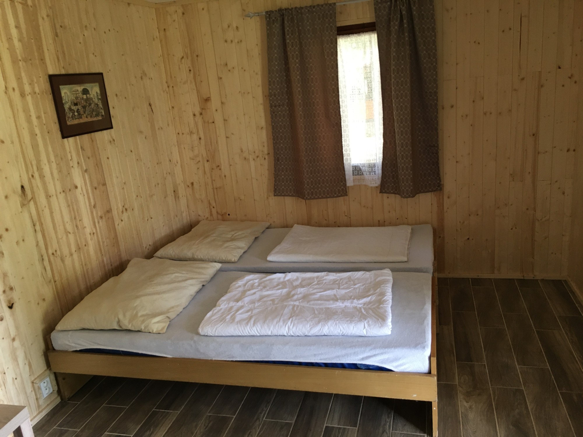 Hosté si mohou vybrat z několika typů ubytování, od menších chat pro dvě až tři osoby se společným sociálním zařízením až po větší chaty, sruby a mobilní domy s vlastním sociálním zázemím. Ubytovací objekty jsou vybaveny základním nábytkem, lůžky s dekami a polštáři, v některých případech také lednicí, rychlovarnou konvicí a venkovní terasou s posezením.