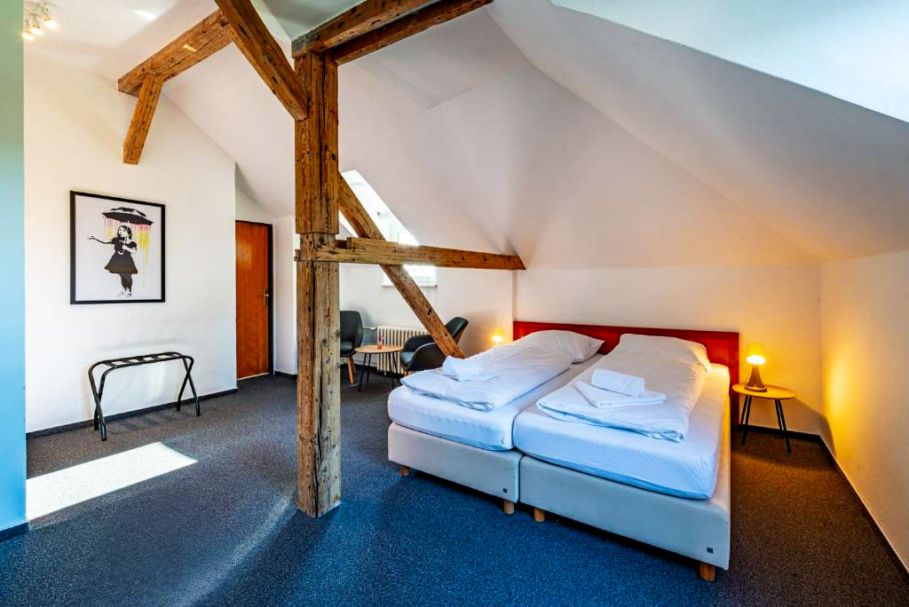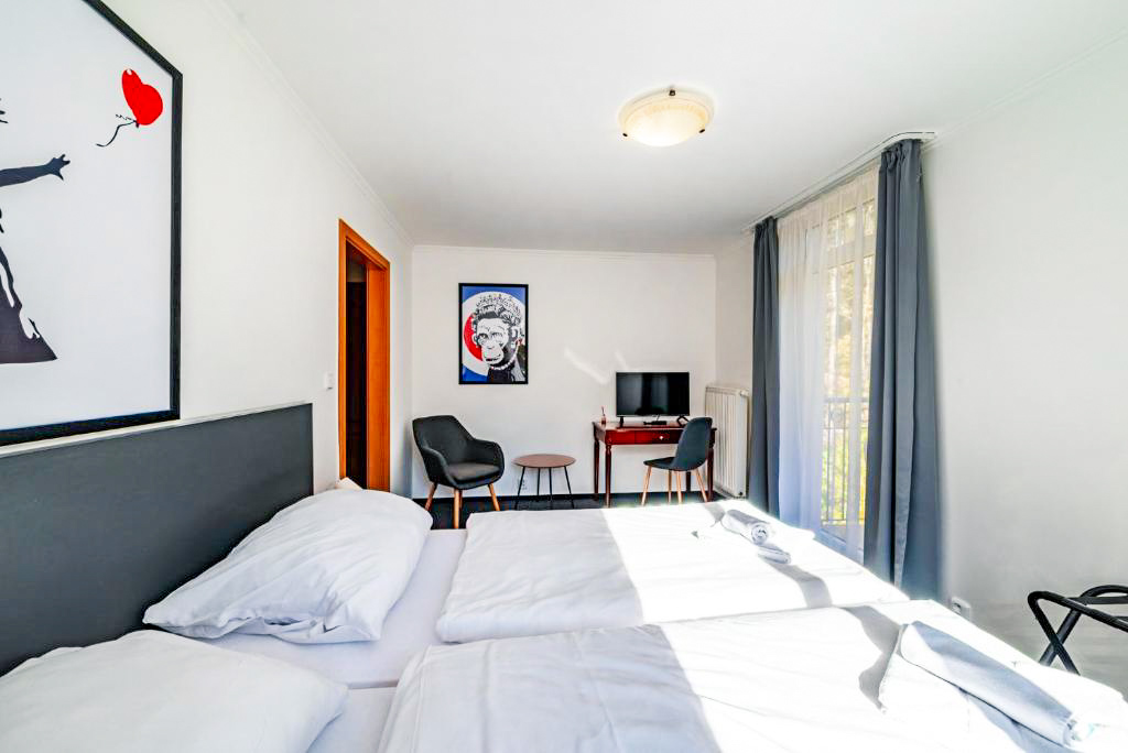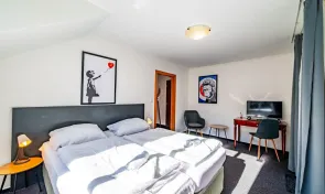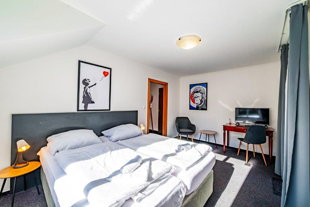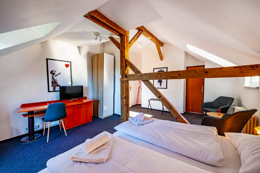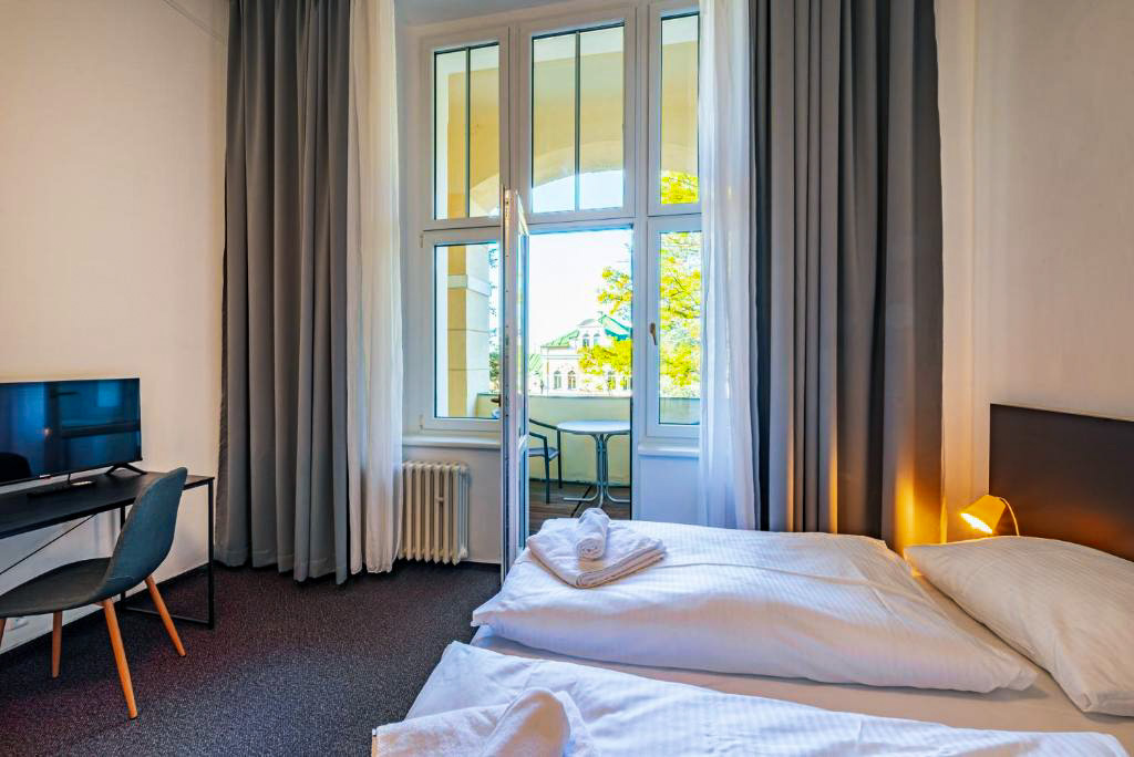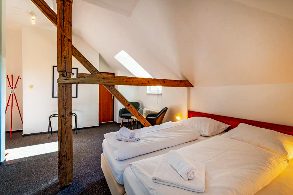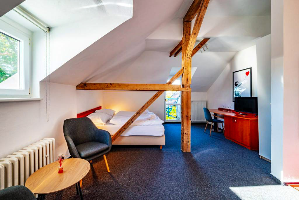 Hotel disponuje celkem 25 pohodlně vybavenými nekuřáckými pokoji určenými pro 2 až 3 osoby. Hosté si mohou vybrat z dvoulůžkových pokojů o velikosti 14–18 m², které poskytují praktické a příjemné zázemí pro kratší i delší pobyty. Prostornější variantu představují dvoulůžkové pokoje s balkonem o velikosti 23–26 m², kde je k dispozici více místa i možnost soukromého venkovního posezení. Stejně velké jsou také dvoulůžkové pokoje s výhledem. Vybrané pokoje umožňují přistýlku, takže jsou vhodné i pro tříčlenné obsazení. Součástí hotelu je rovněž jeden plně bezbariérový pokoj přizpůsobený hostům se sníženou pohyblivostí.