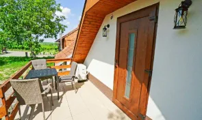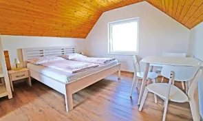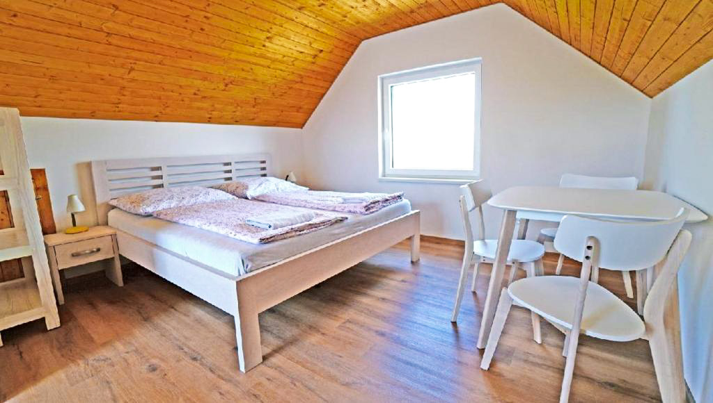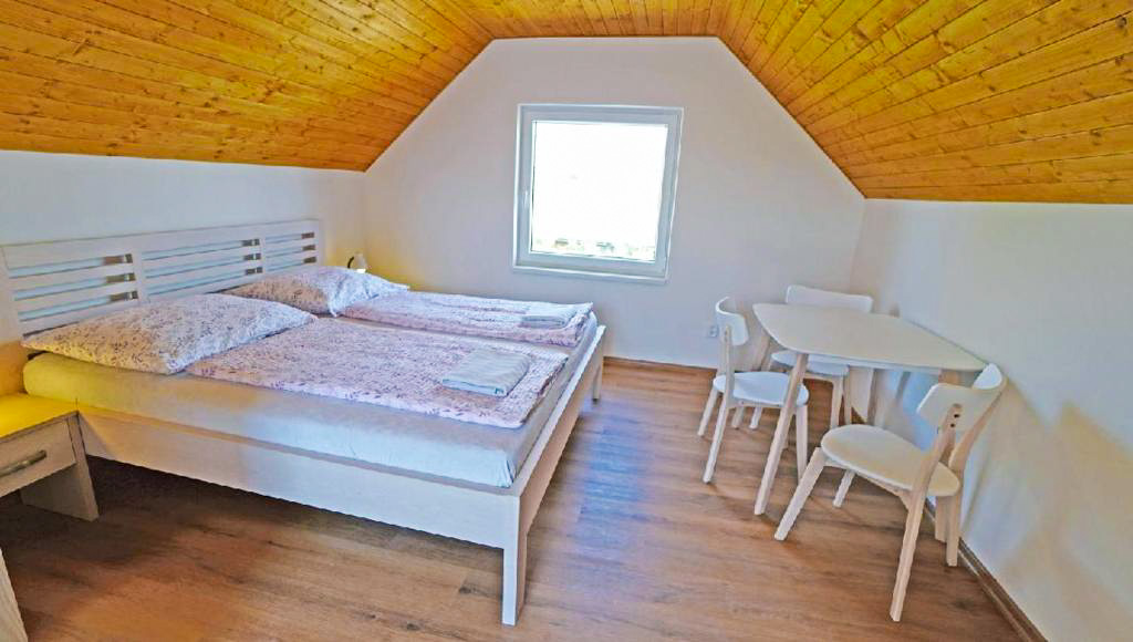 Objekt vznikl přestavbou původního sklepa z roku 1981, který prošel v roce 2024 rekonstrukcí přizpůsobenou pro ubytování. K dispozici jsou dva samostatné dvoulůžkové pokoje. Podkrovní pokoj disponuje vlastní terasou, klimatizací, koupelnou se sprchovým koutem a toaletou, nechybí ani lednička a rychlovarná konvice. Druhý pokoj, situovaný nad sklepem, je rovněž dvoulůžkový a má vlastní koupelnu, toaletu a menší kuchyňku, terasa zde není k dispozici.